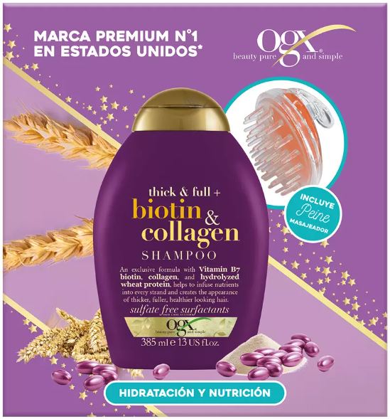 - Pack OGX Biotin & Collagen Shampoo + Cepillo Naranjo: Compra aquí