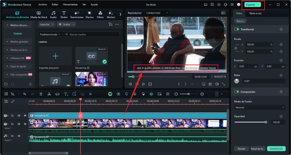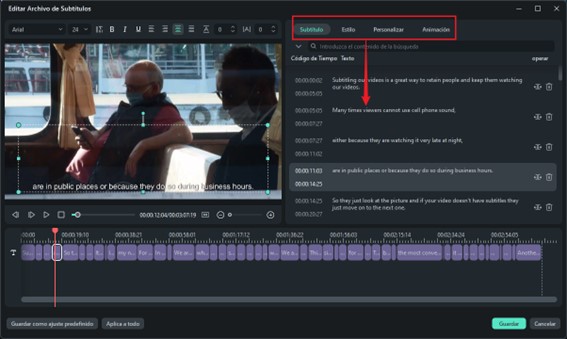 5. Edita y ajusta los subtítulos: Después de la traducción, los subtítulos aparecerán en la línea de tiempo del video. Selecciona los subtítulos para editarlos manualmente si es necesario.