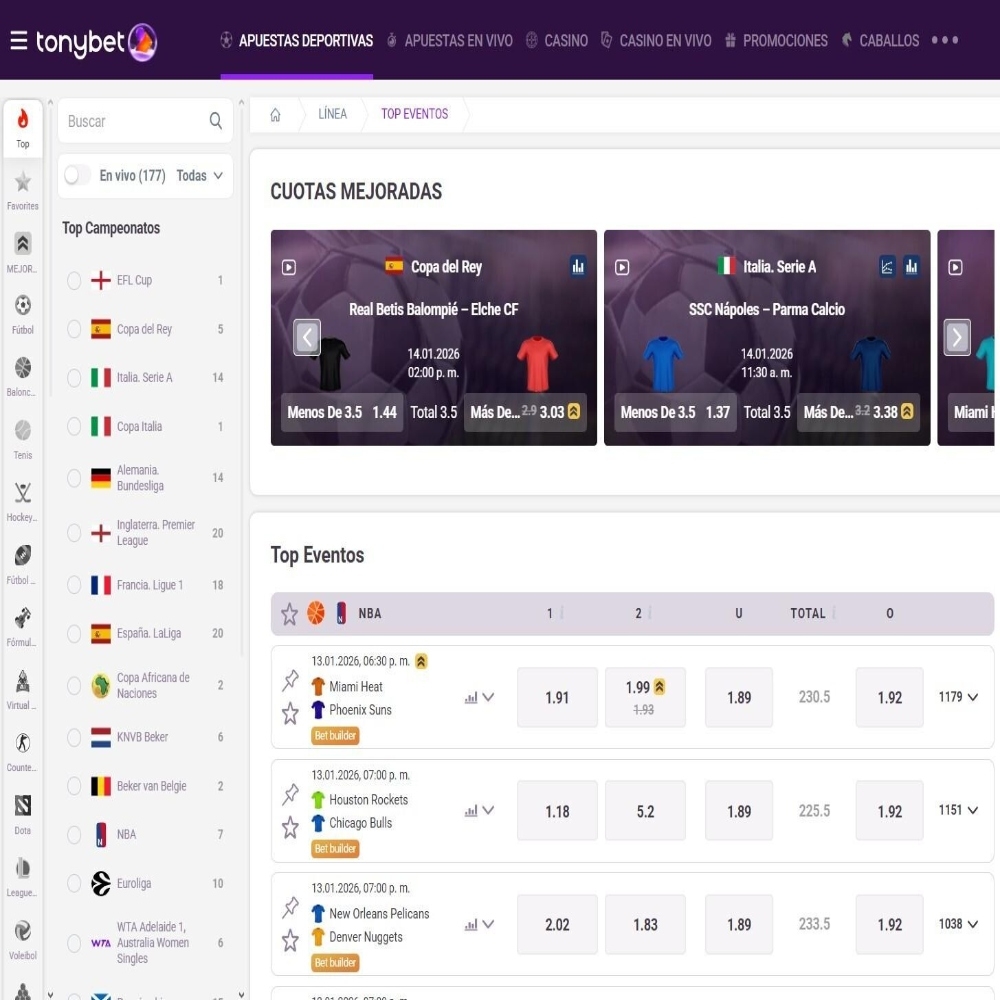 Tonybet – Muchos eventos con cuotas mejoradas