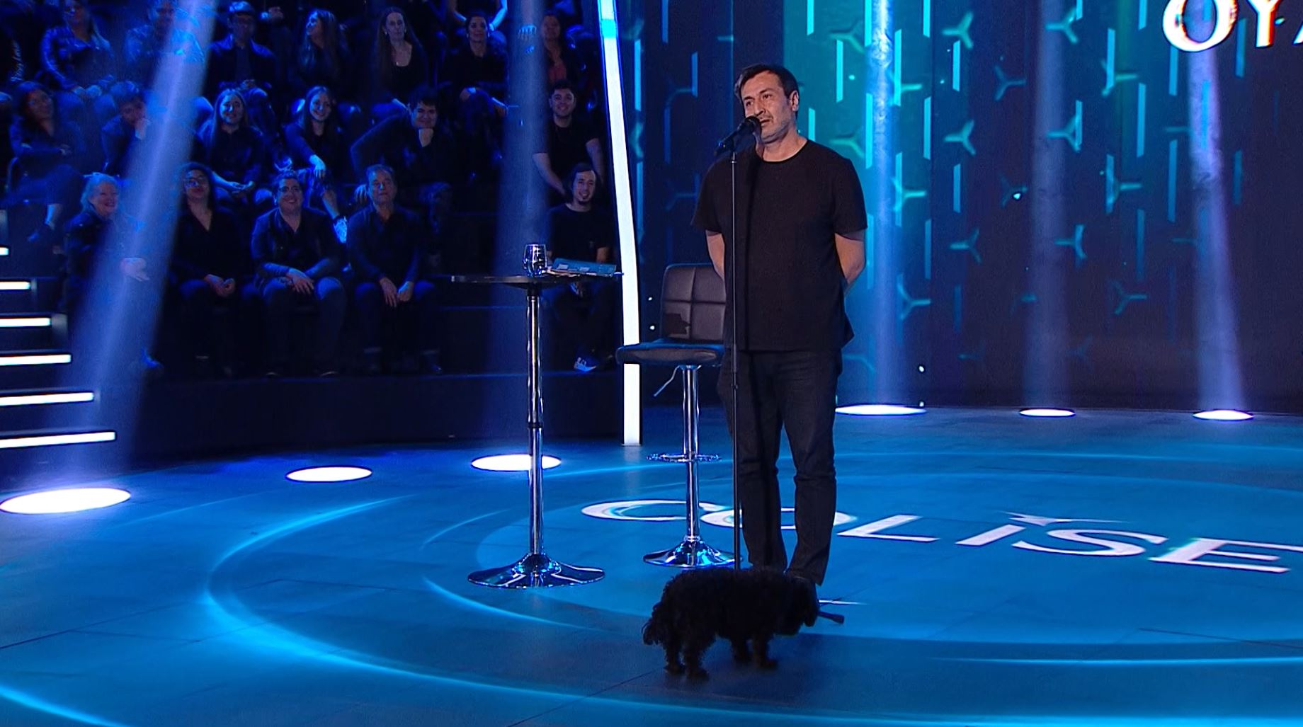 El humorista hizo ingreso con su pequeña perrita Areta, lo que desde un principio dejó a los presentes cautivados con la escena.
