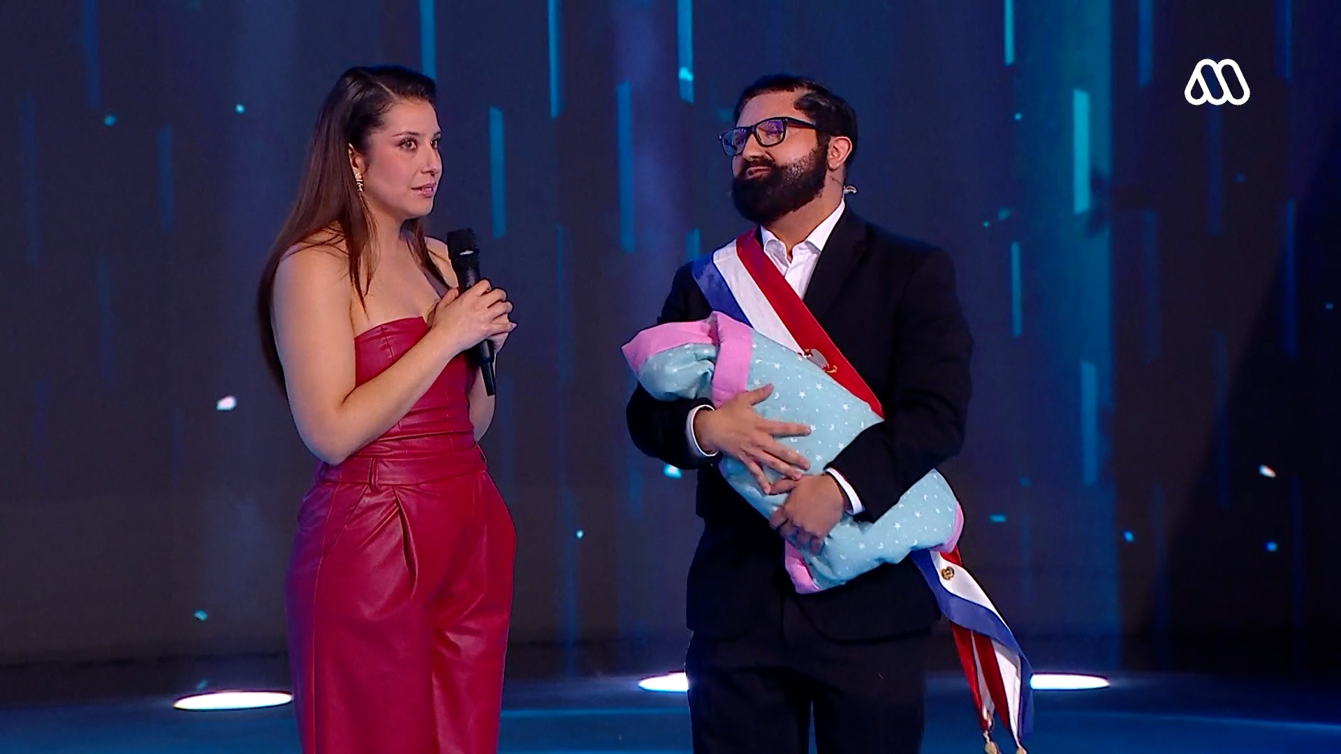 En su actuación, Parra hizo una parodia hilarante del mandatario, incorporando detalles clásicos y nuevos. Entre ellos, la escena donde Boric aparece con su bebé, "Violeta", y la típica confusión de nombres, que se ha vuelto casi una seña de identidad de sus discursos: “Perdón, que estoy un poquito cansado, pero dispuesto a poder estar acá... en Coliseo. Perdón, no tenía el nombre exacto en este momento”. Esta espontaneidad causó muchas carcajadas entre los asistentes.