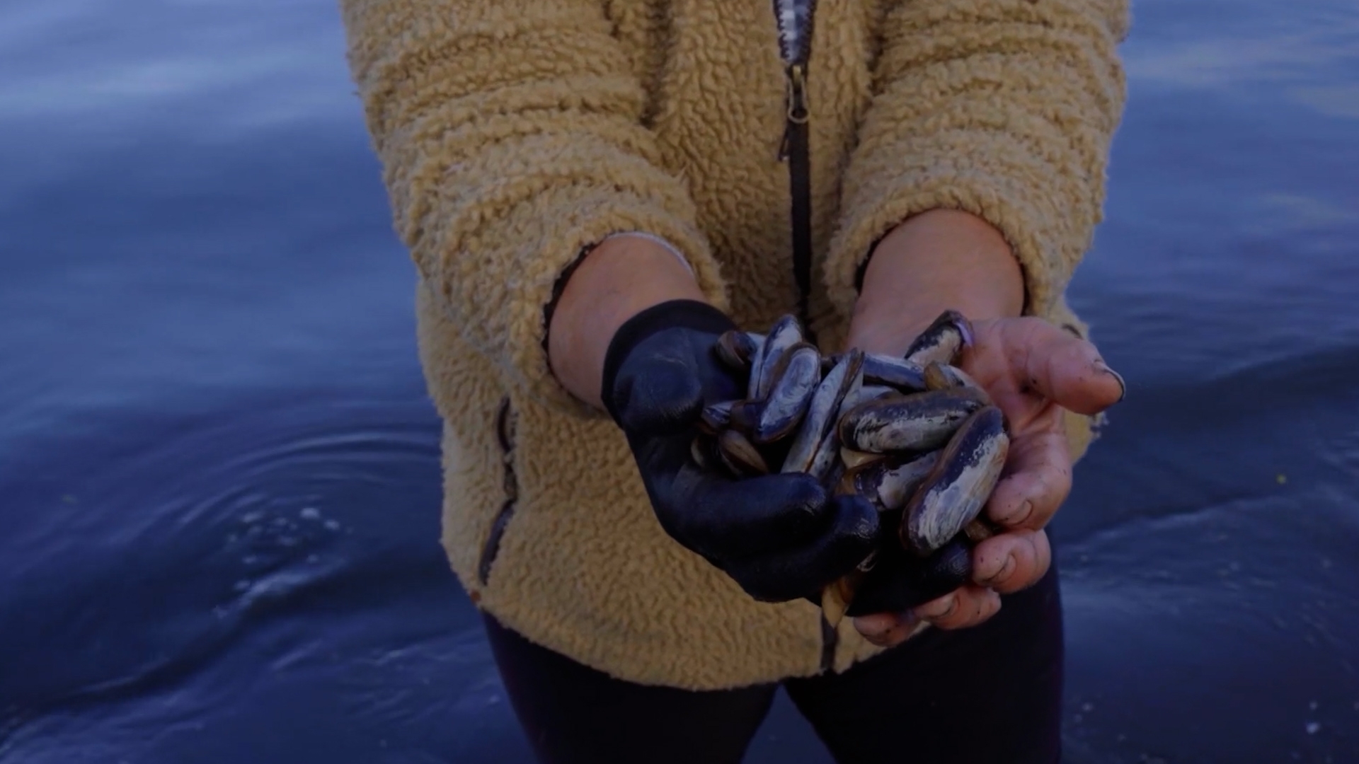 El recorrido comienza bajo el agua, donde Tomás bucea entre cuelgas de cultivo que albergan miles de choritos creciendo durante 18 meses. La familia explica cómo el policultivo, que incluye también cholgas y piures, optimiza el ecosistema sin agotar los recursos naturales.