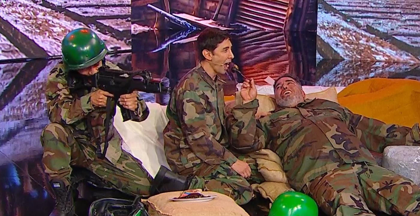 En Detrás del Muro, Rodrigo Villegas participó en un divertido sketch ambientado en un contexto de guerra.