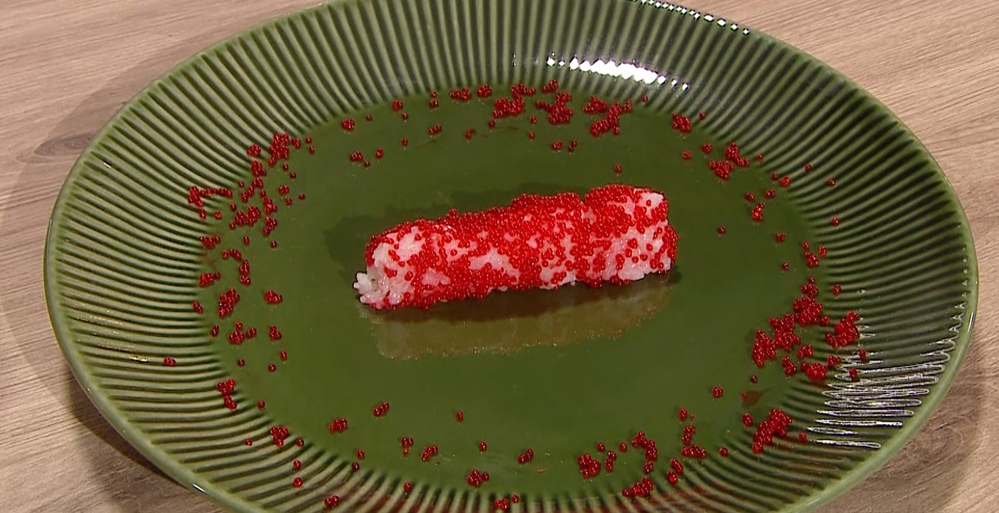En el capítulo 14 de El Internado, los participantes del equipo rojo presentaron sus platos de sushi ante los jueces para no convertirse en el nuevo nominado.