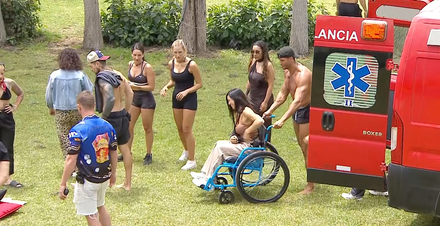 La bailarina llegó abordo de una ambulancia y fue bajada con mucho cuidado a una silla de ruedas, dejando a todos los participantes sorprendidos.