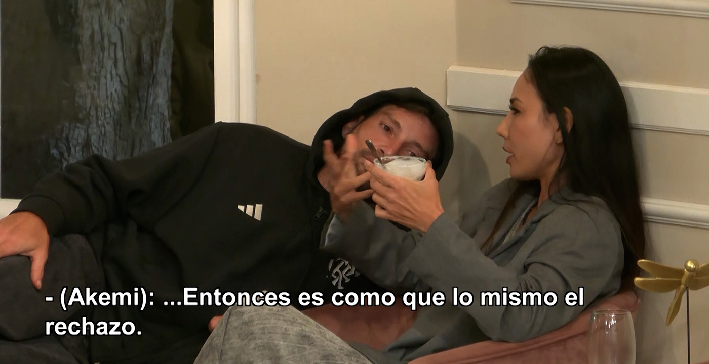 El cantante se acercó a quien actualmente es su pareja en el encierro e intentó darle un beso, pero ella estaba enojada: "Muy irrespetuoso, de verdad, ojalá nadie se le ría de sus historias. De las dos únicas personas... y se ríen, o sea, mi equipo no pues, ni siquiera es mi equipo porque ustedes nunca me han considerado, es lo mismo, el rechazo, yo no soy suficiente".