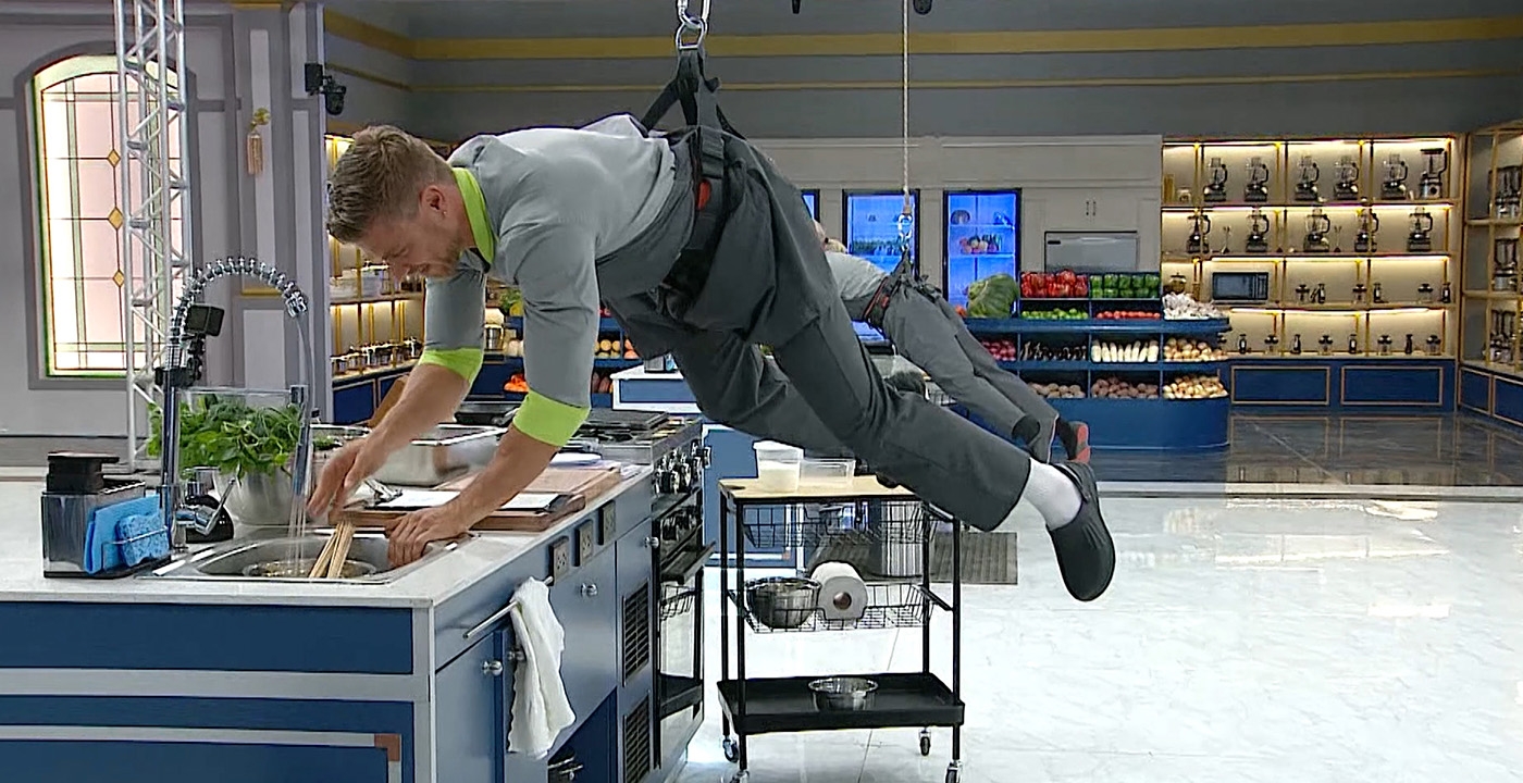 Una prueba extrema de cocina obligará a los famosos a realizar todo mientras están colgados desde el techo y se generarán situaciones impresionantes.