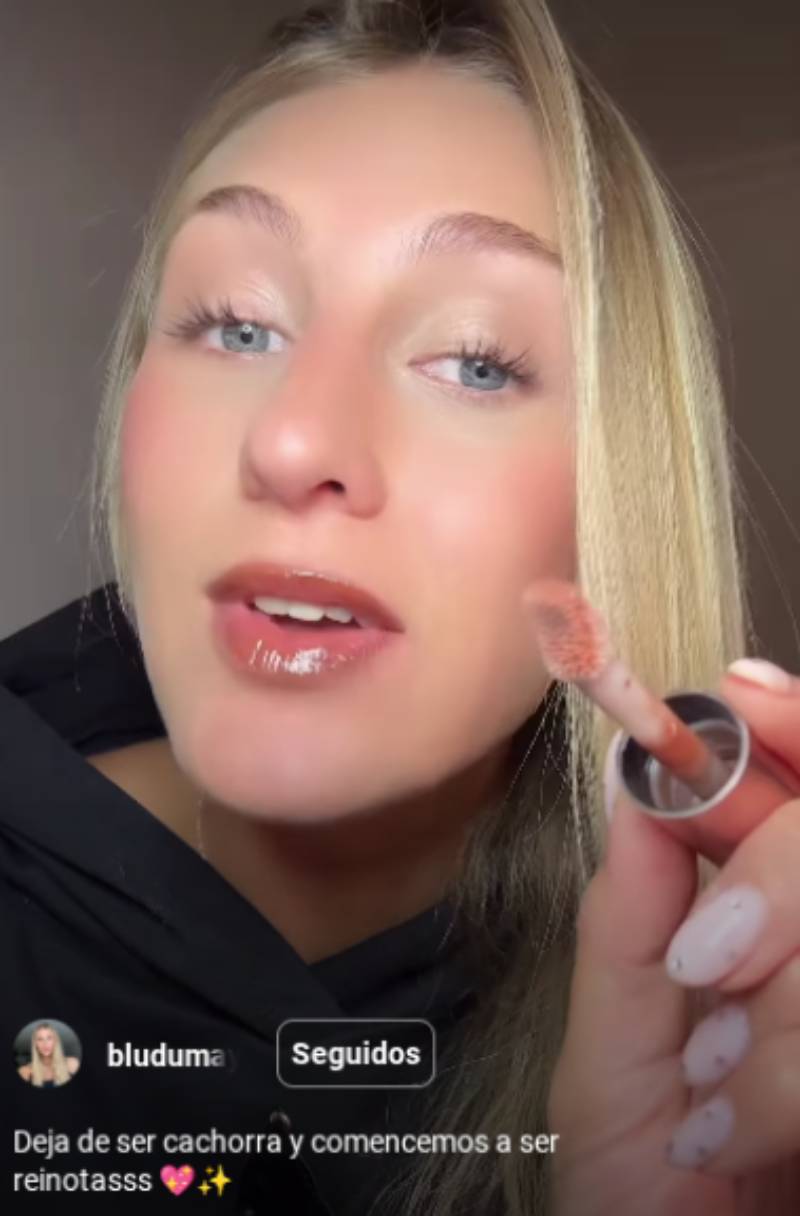 Blu compartió un video donde aconseja a sus fans a dejar de perseguir a sus parejas o pretendientes. En la grabación se la ve maquillarse y ponerse brillo labial mientras habla con contundencia. "Tú no eres una cachorra", escribió sobre la imagen.
