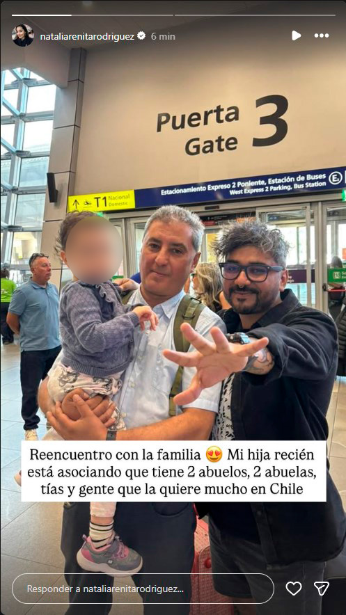 Natalia Rodríguez publicó una foto de su hija Luisa, junto a sus seres queridos: "Reencuentro con la familia, mi hija recién está asociando que tiene 2 abuelos, 2 abuelas, tías y gente que la quiere mucho en Chile".