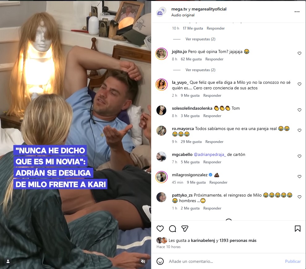 Sin embargo, la respuesta de Adrián Pedraja no fue la mejor y lanzó un comentario que dejó a varios sorprendidos: "Nunca he dicho que es mi novia. Esa muestra que he tenido yo con ella y ella me decía 'te quiero' y yo no siempre".