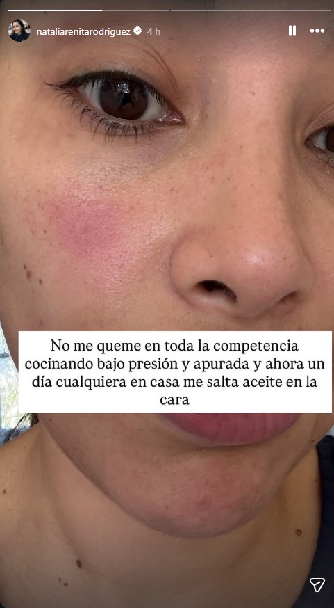 "No me quemé en toda la competencia cocinando bajo presión y ahora, en un día cualquiera en casa, me salta aceite en la cara", explicó.