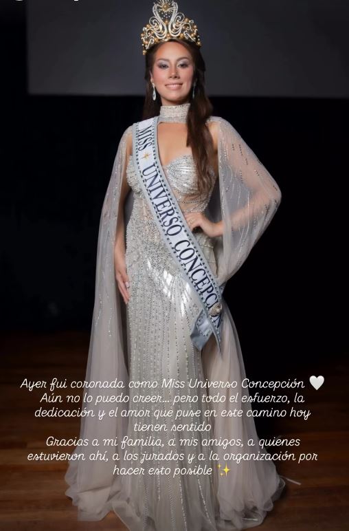 Tras coronarse como Miss Universo Concepción, la joven manifestó que “aún no lo puedo creer, pero todo el esfuerzo, la dedicación y el amor que puse en este camino, hoy tienen sentido”.