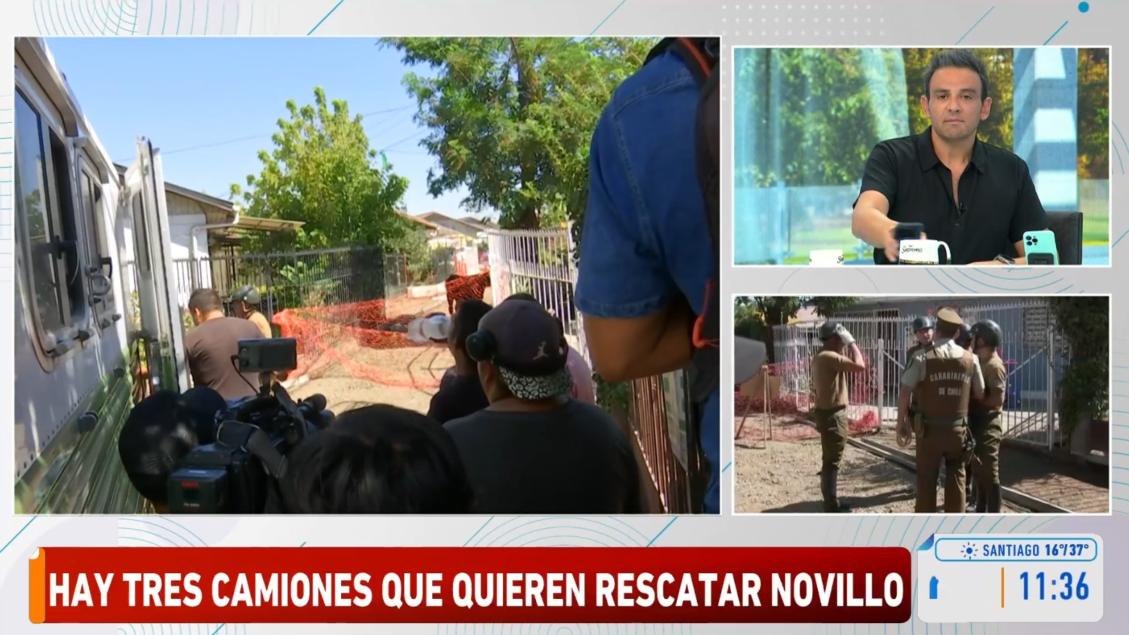 En el lugar, funcionarios de Carabineros cercó el pasaje con una malla. Finalmente, personal de la caballería de la institución logró el rescate del novillo.
