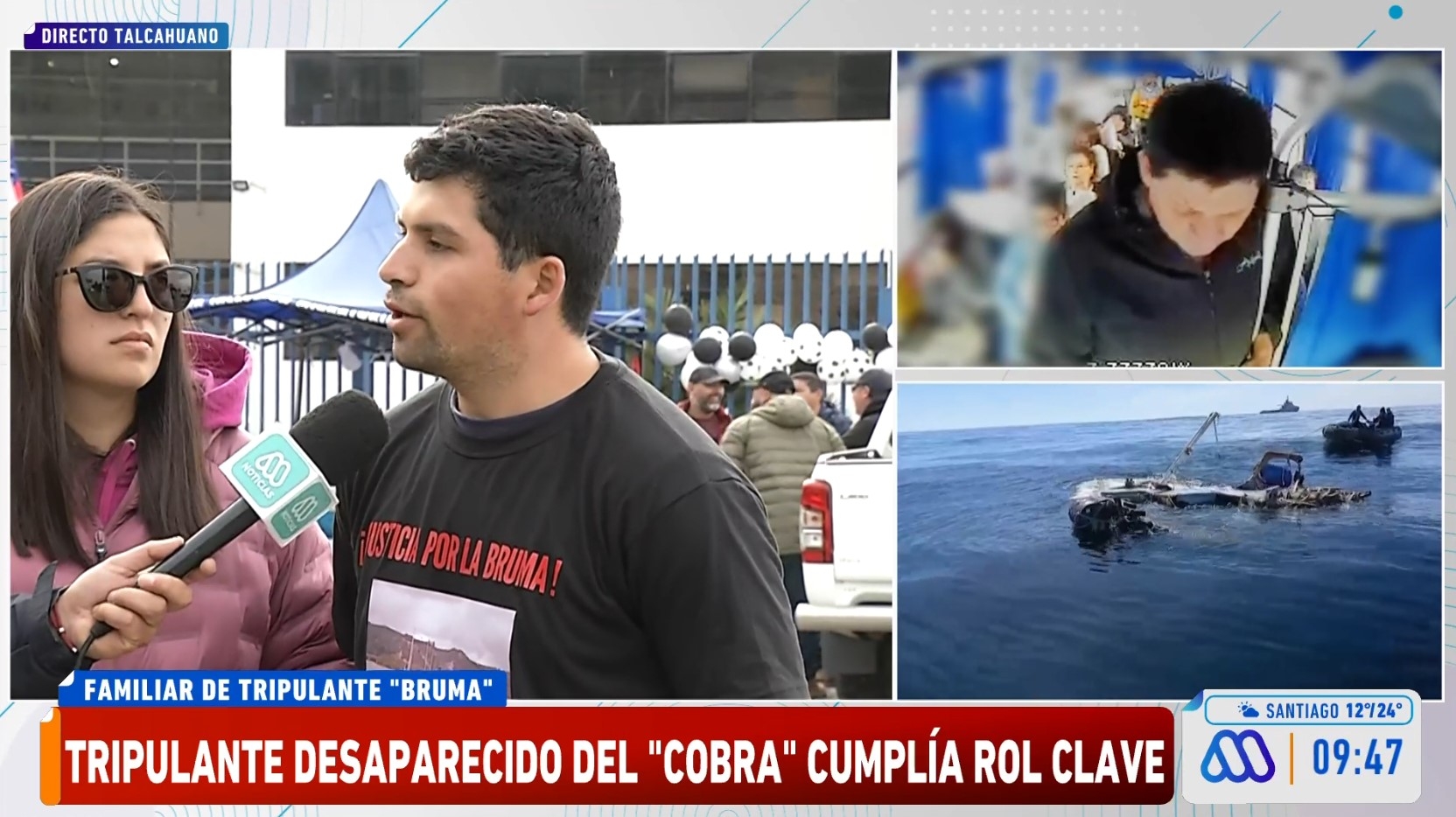 Lázaro Bravo, familiar de dos de los siete pescadores que se encuentran desaparecidos en Coronel, región del Biobío, tras el naufragio de la lancha "Bruma", criticó la actitud de la empresa Blumar, dueña del barco "Cobra".