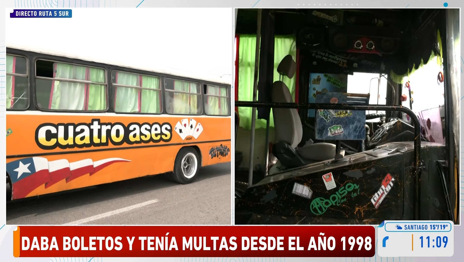 Lo anterior solo fue una parte de todo, ya que el bus, cuya data es de 1994, tenía multas desde 1998. Además, el último número de su placa patente estaba tapado, lo mismo que la patente pintada en su parte posterior, junto a esto carecía de la placa delantera.