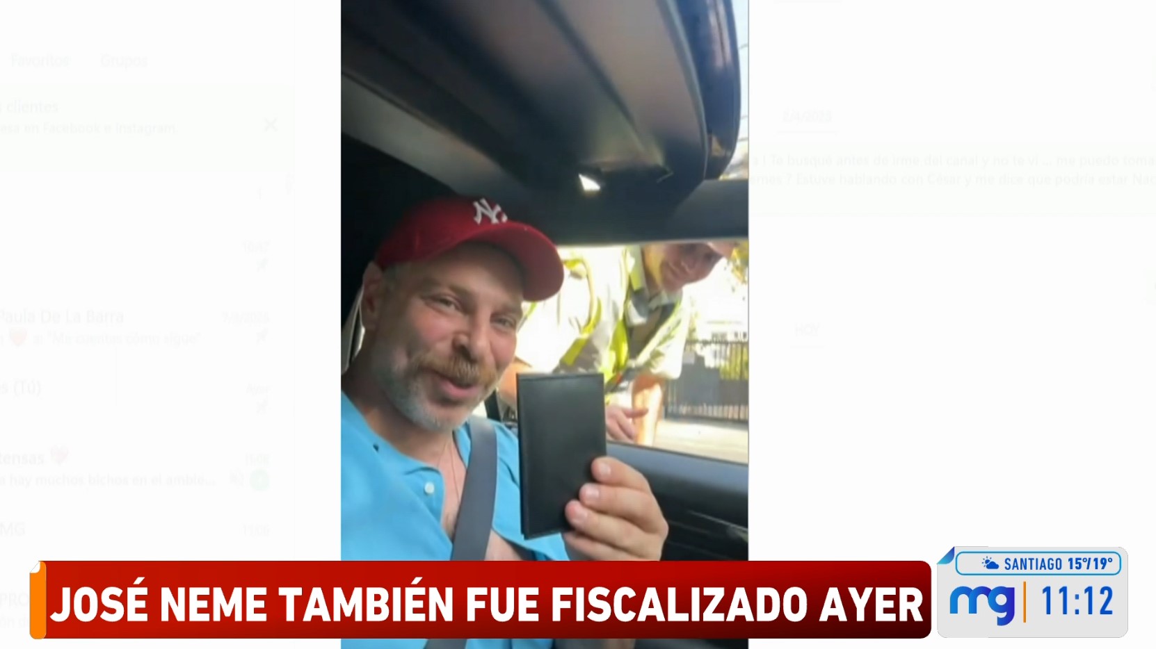 "Estoy siendo fiscalizado y tengo todos mis documentos. Estoy con el funcionario de Carabineros. Si uno tiene todos sus documentos, ordenadito, la licencia, el carnet de identidad, la homologación, el permiso de circulación y la revisión técnica y todo, se demora menos de dos minutos", dijo José Antonio en el video revelado en Mucho Gusto.