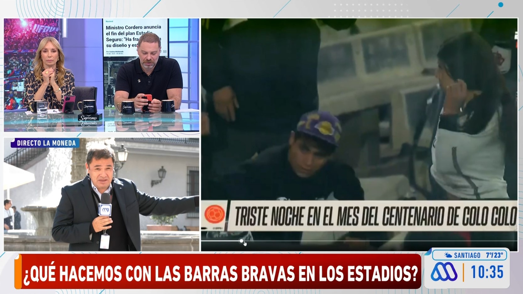 "Los hinchas de la U, la Católica, de Colo Colo, ya están hasta la tusa con los barras bravas, porque esto viene desde el macheteo afuera de la estación del Metro para pedir plata para la entrada, los cogoteos de los niños más jóvenes, las peleas y ahora esta moda de que quieren entrar sin entradas, a la mala, agrupándose", comenzó diciendo el comunicador.