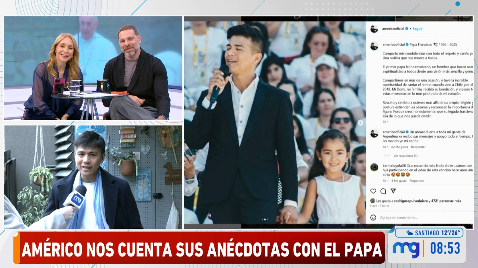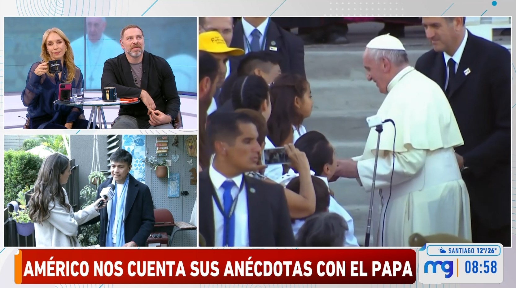 Sin embargo, un par de horas después, el cantante volvió a encontrarse con el santo padre, esta vez en el casino. "Estaba con una bandeja escogiendo su comida, para luego sentarse en mesas comunes (...) Tenía una risa muy divertida, por supuesto que me recibió con mucho cariño y me autorizó además a contar lo que hoy día estoy contando", narró.