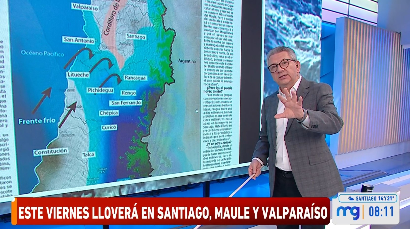 Por otro lado, Don Jaime sostuvo que el desarrollo de un nuevo sistema frontal en la zona centro-sur y sur del país desencadenará un poco usual fenómeno, el que traerá lluvias intensas a Santiago.