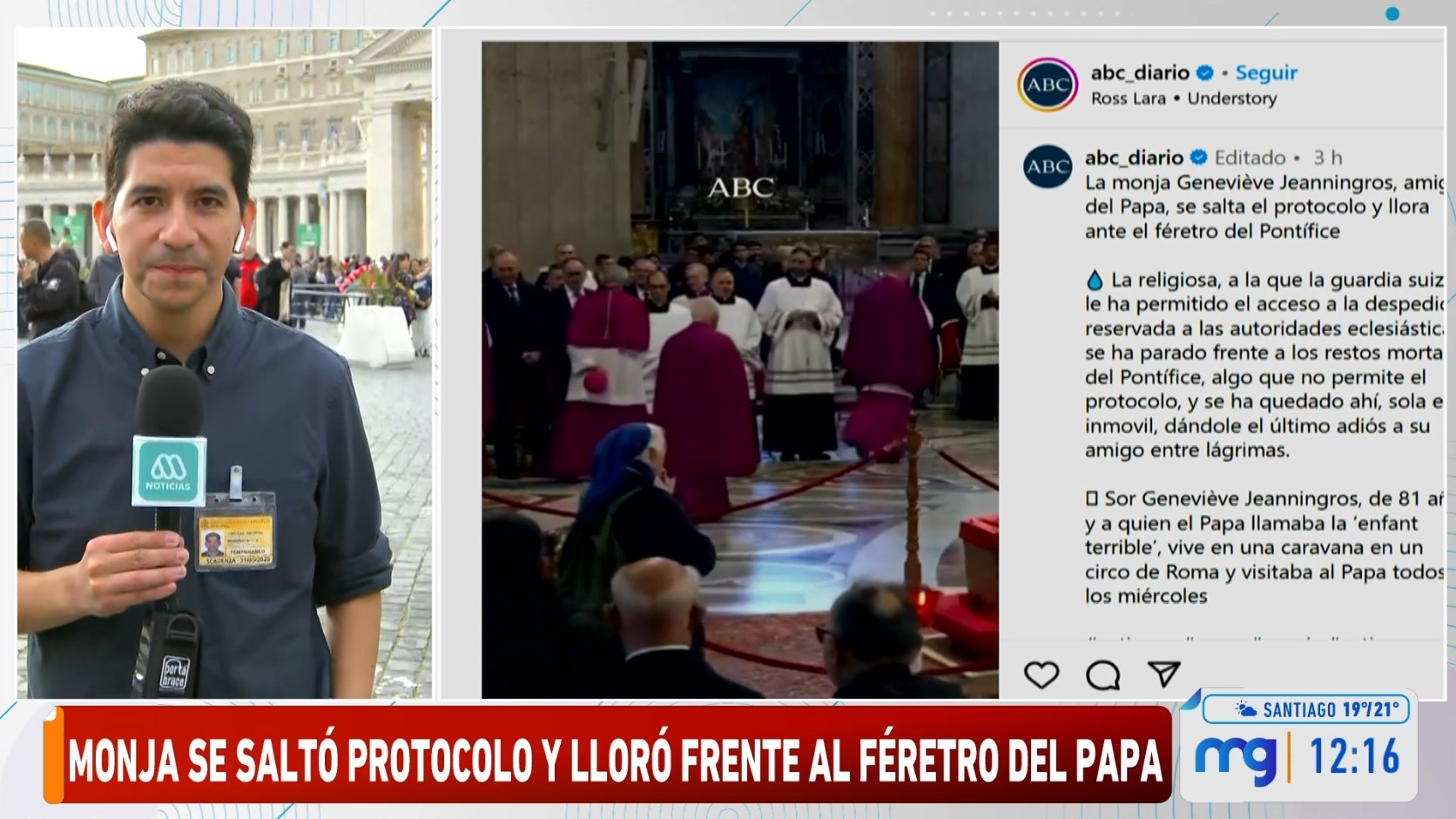 En medio de una multitud de cardenales y religiosos, una monja, con mochila verde al hombro, se acercó sola y en silencio a uno de los costados del féretro del pontífice, para rezar y llorar. Allí permaneció durante varios minutos, sin que nadie la interrumpiera, pese que el protocolo establecía que los visitantes solo podían pasar por unos instante ante el féretro del fallecido papa.