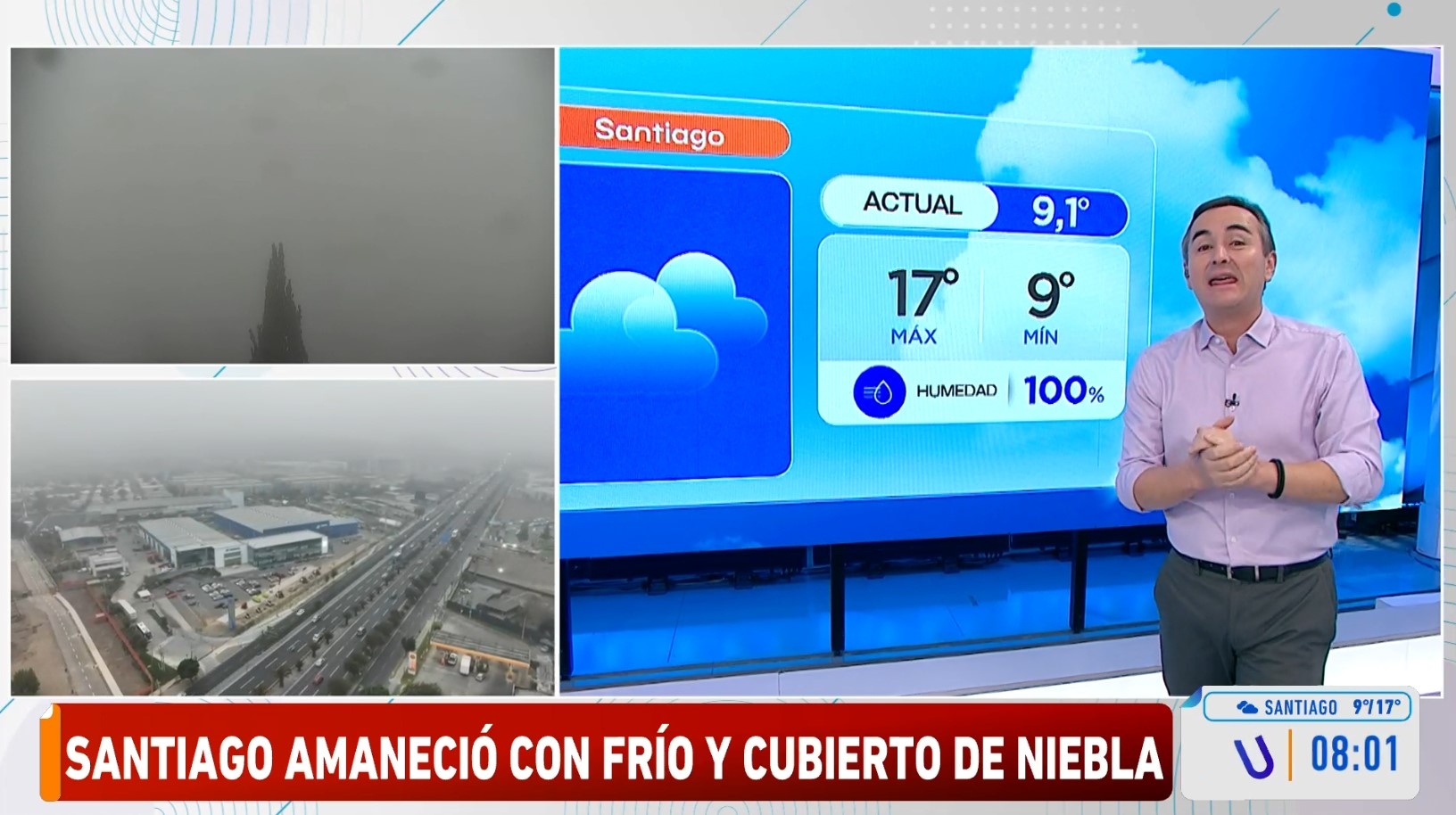 Según señaló, para este miércoles en Santiago se espera una jornada fría y húmeda tras el ingreso de nubosidad desde el litoral, con una máxima que podría escalar hasta los 17 grados en la capital.