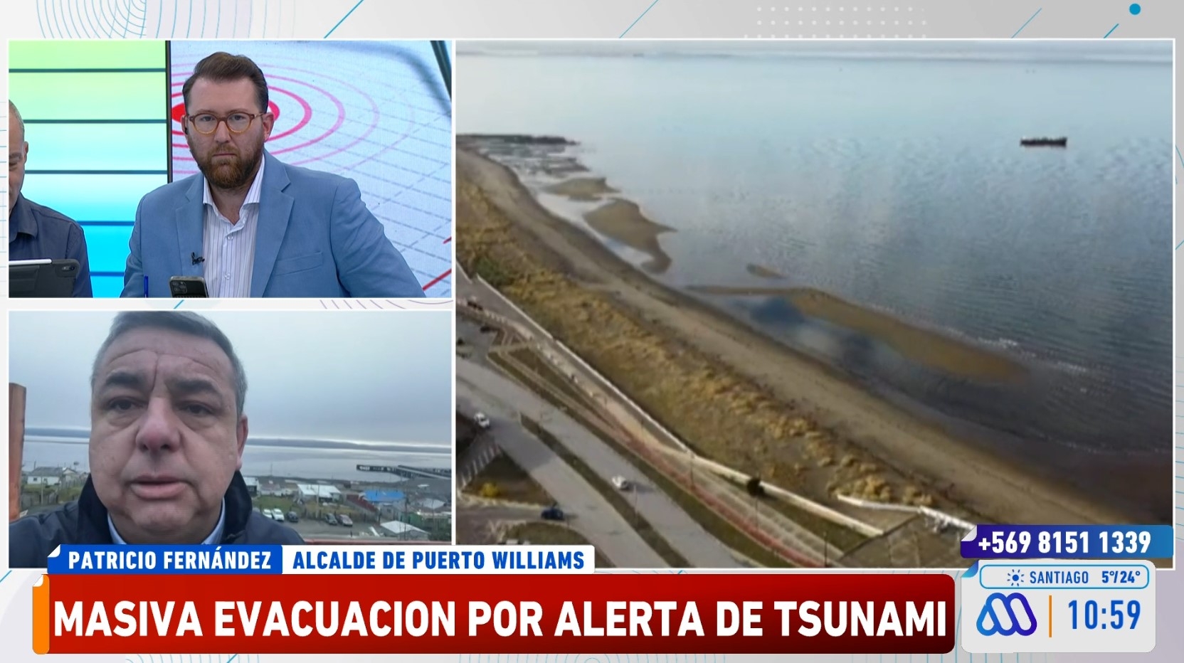 El alcalde de Puerto Williams, Patricio Fernández, conversó con Mucho Gusto sobre el sismo 7,5 que se registró en la costa de la región Magallanes, que mantiene en estado de "precaución" de tsunami.
