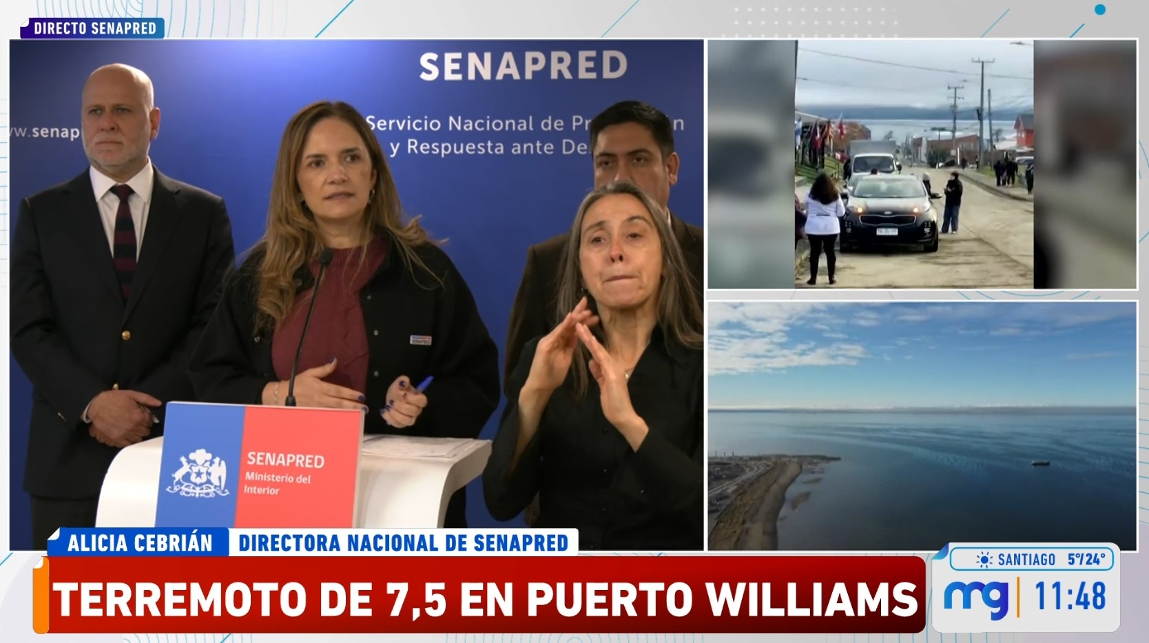 Mientras que la directora del Servicio Nacional de Prevención y Respuestas (Senapred), Alicia Cebrián, explicó que "se mantiene el estado de precaución, vale decir, que existe la amenaza de tsunami, pero sólo acotado a la zona de playa y de costanera de toda la región de Magallanes".