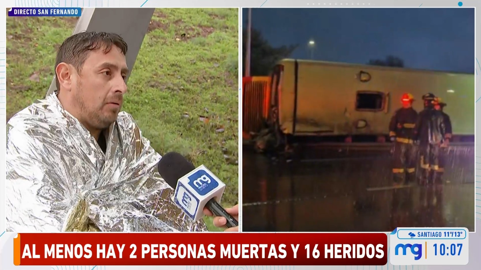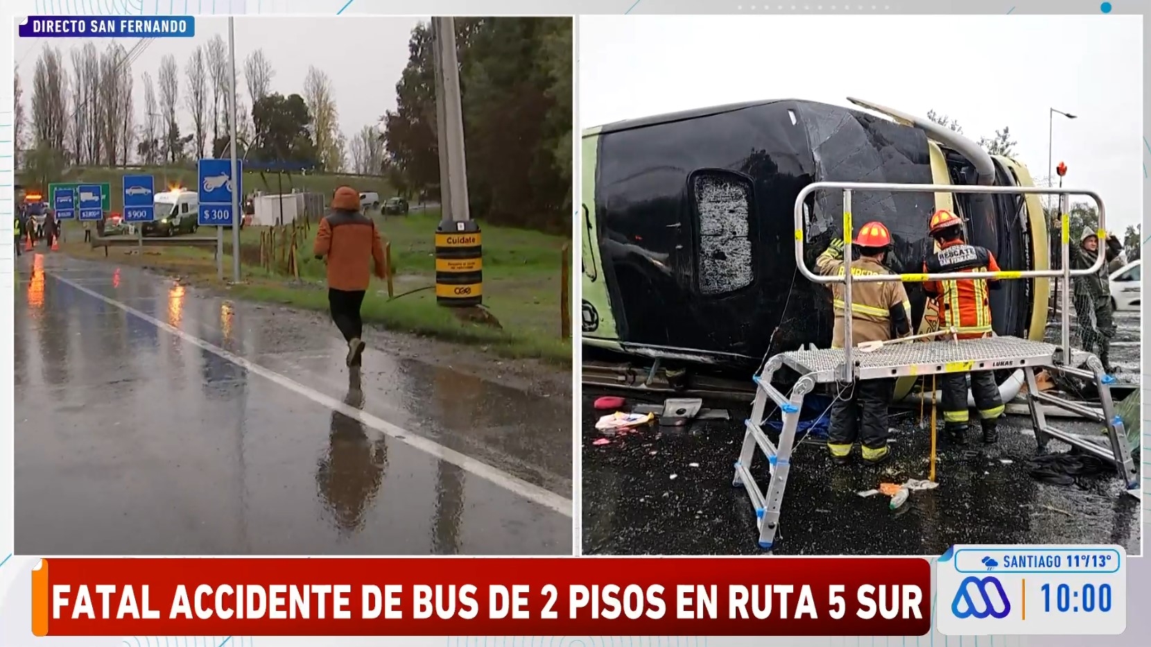 En horas de la mañana de este lunes ocurrió un fatal accidente de tránsito en la Ruta 5 Sur, en la zona de San Fernando, región de O’Higgins, tras el volcamiento de un bus.