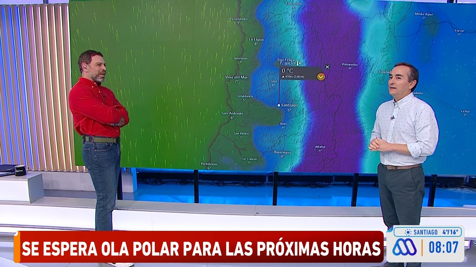 El periodista especializado en meteorología, Alejandro Sepúlveda, adelantó en Mucho Gusto que durante la noche de este martes y madrugada del miércoles ingresa "una masa de aire subpolar que viene de la cercanía de la Antártica, llega a la zona central de Chile, también de Argentina".