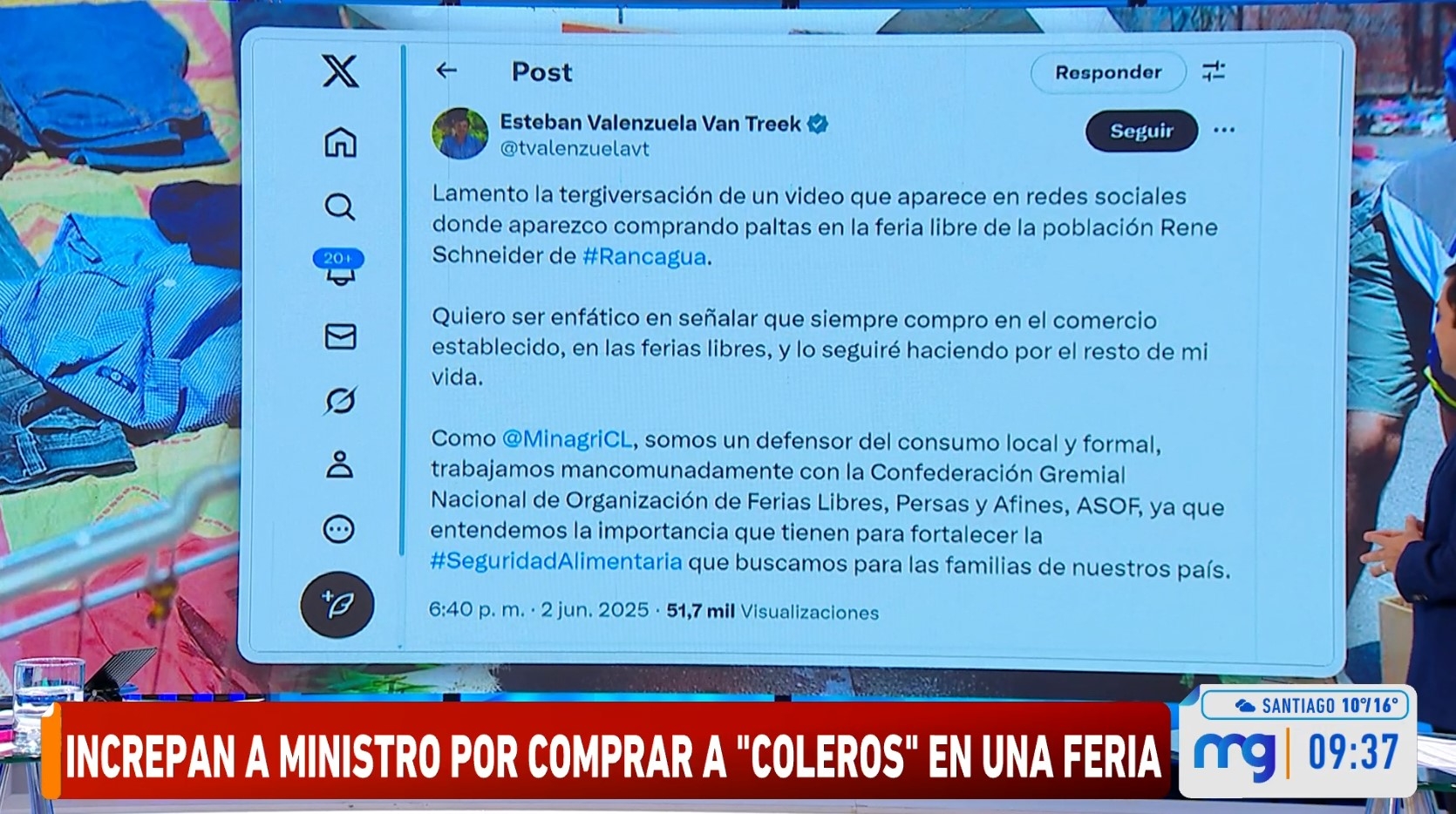 El ministro de Agricultura, Esteban Valenzuela, se encuentra en el ojo mediático luego que se conociera un video donde se le comprando a comerciantes informales, también llamados "coleros", en la feria René Schneider de Rancagua, en la región de O’Higgins.