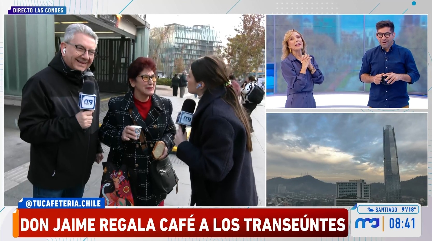 Todo ocurrió cuando el meteorólogo y la periodista Darynka Marcic entregaban desayunos a quienes transitaban por las inmediaciones de la estación Los Dominicos del Metro de Santiago, en la comuna de Las Condes, momento en que una tentadora bandeja de queques pasó delante de la cámara.