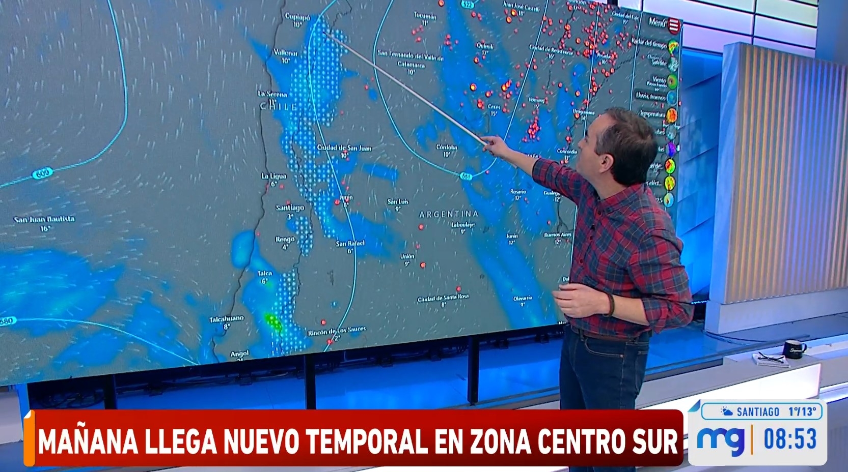 Este ambiente gélido es solo la previa de un nuevo sistema frontal que tendrá mayor fuerza y que amenaza a la capital y a varias regiones de la zona central y sur con fuertes precipitaciones, ráfagas de viento y posibles nevadas.