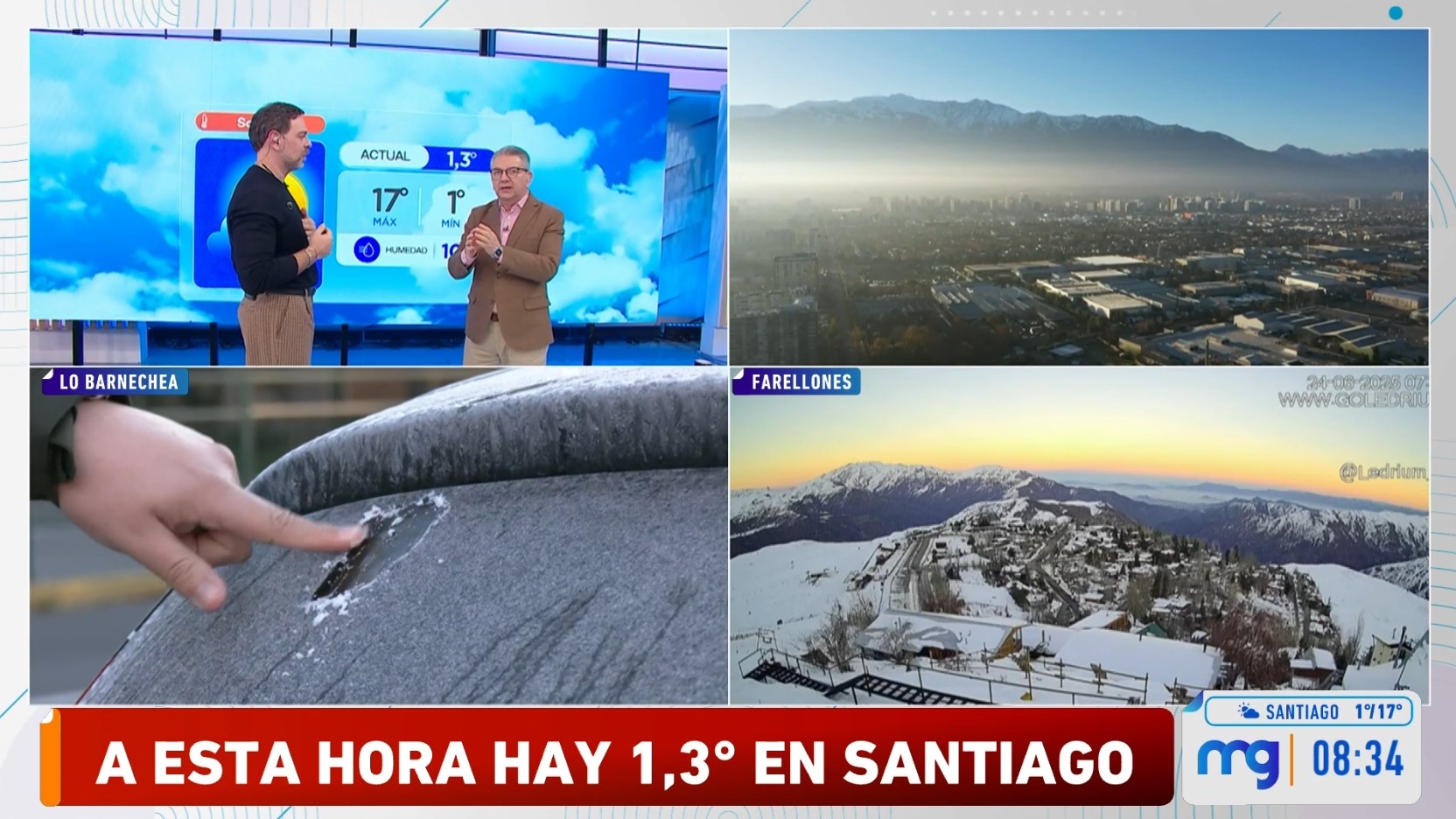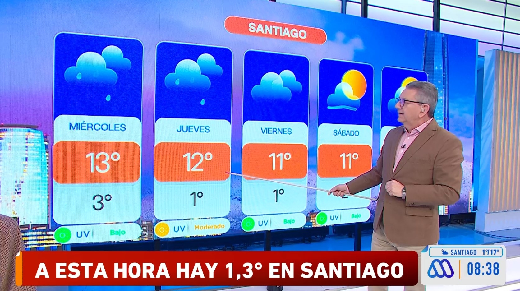 Precisamente, según el pronóstico del meteorólogo de Megatiempo, Jaime Leyton, este martes 24 de junio se marcó una mínima de poco más de 1 grado en la capital, con una proyección de hasta 17 °C de máxima.