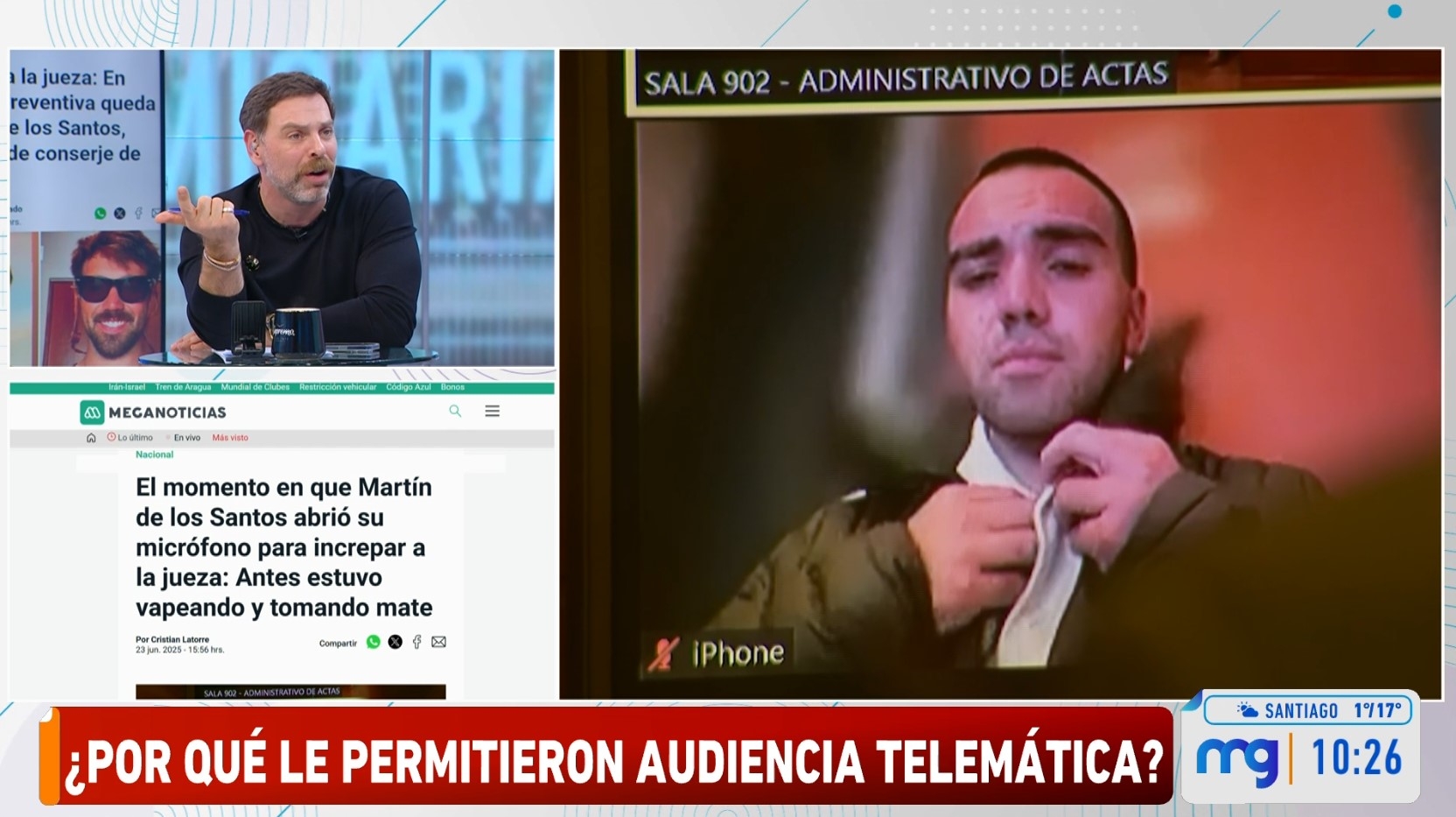Desde un principio, el conductor de Mucho Gusto se mostró molesto por la escena que protagonizó de los Santos, asegurando que "uno puede calificarlo de estúpido, soberbio, ridículo... es evidente lo jugoso que es". Sin embargo, hizo hincapié en que el sistema judicial accediera a que éste compareciera vía Zoom.