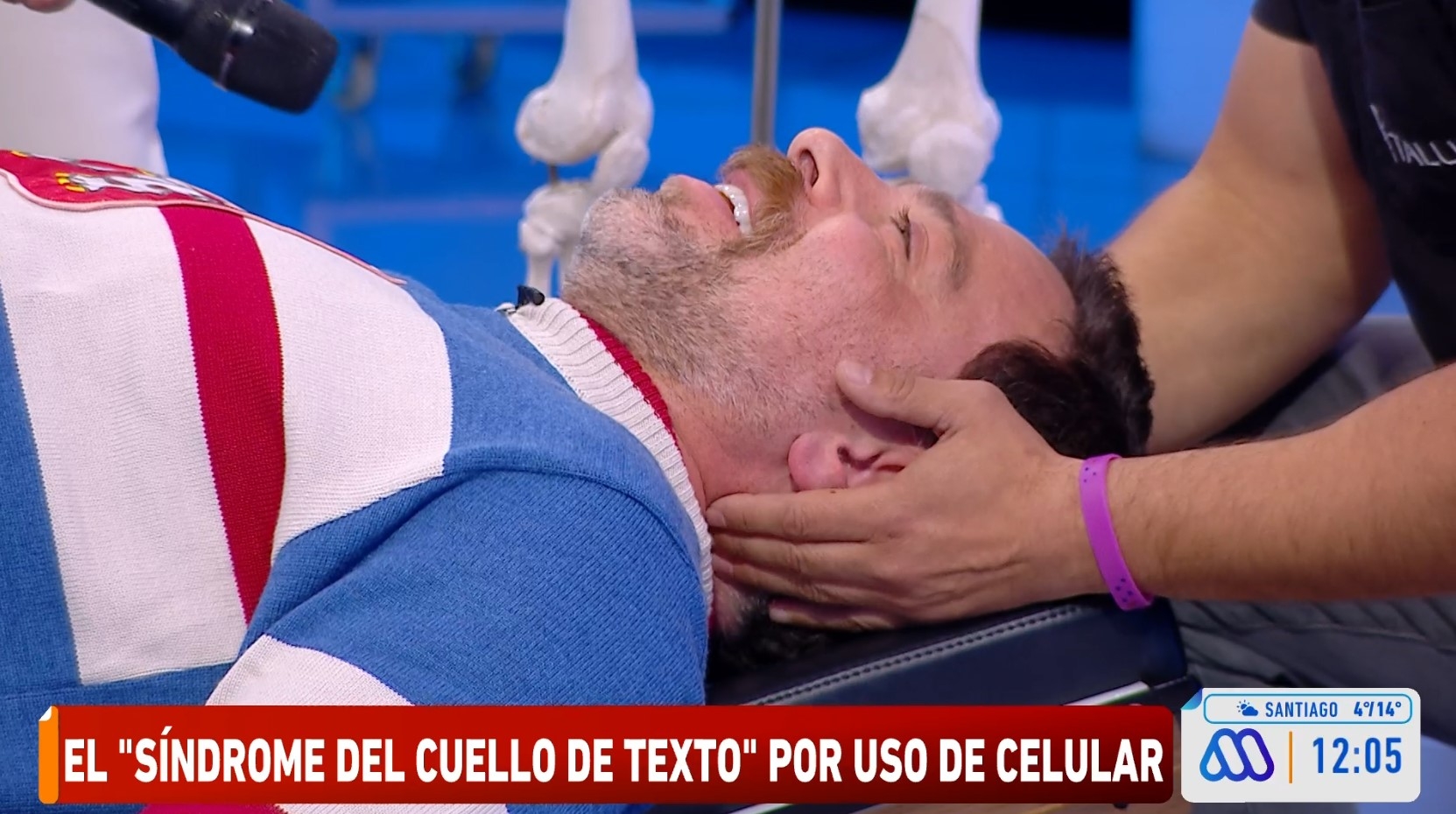 Todo ocurrió cuando el kinesiólogo y quiropráctico Cristóbal del Campo visitó el estudio del matinal, para conversar sobre los habituales dolores de cabeza y el "síndrome del cuello de texto" por el uso excesivo de celular.