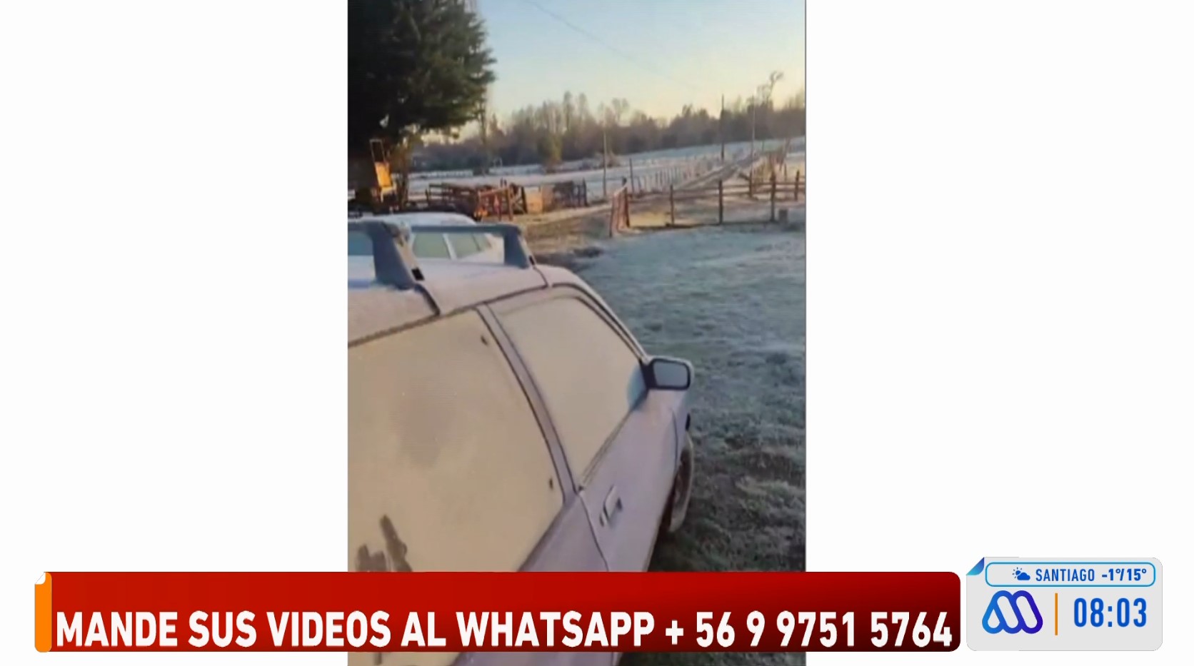 Otros registros revisados en Mucho Gusto, mostraron el gélido amanecer en distintos sectores del país, como Temuco y Santiago, donde los autos amanecieron congelados.