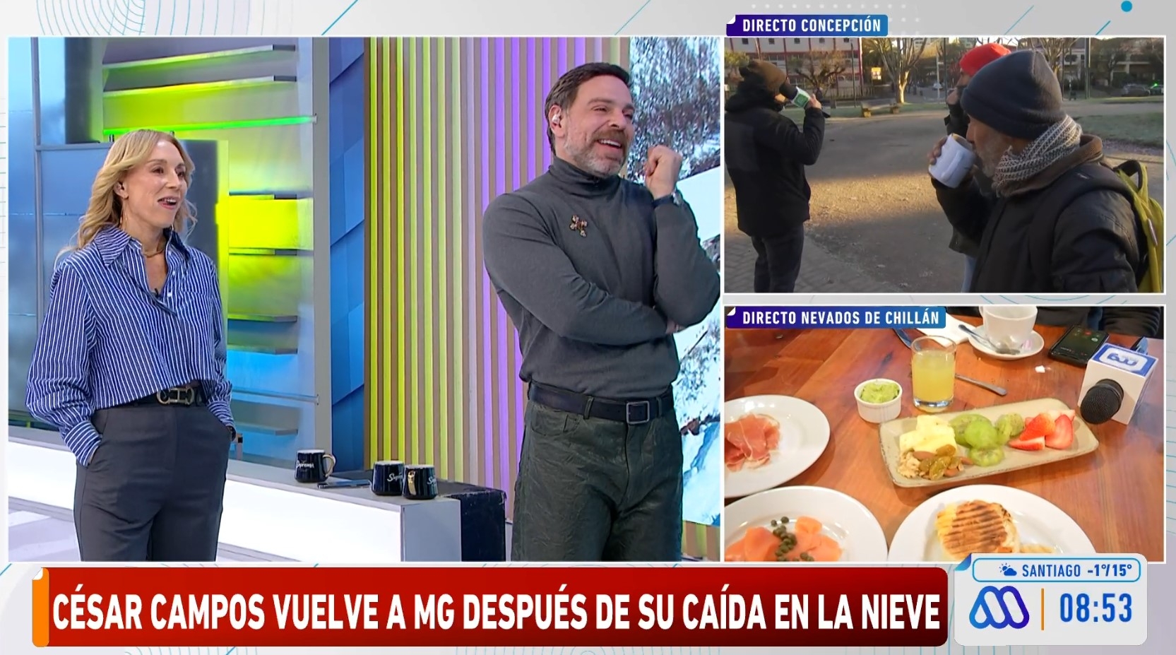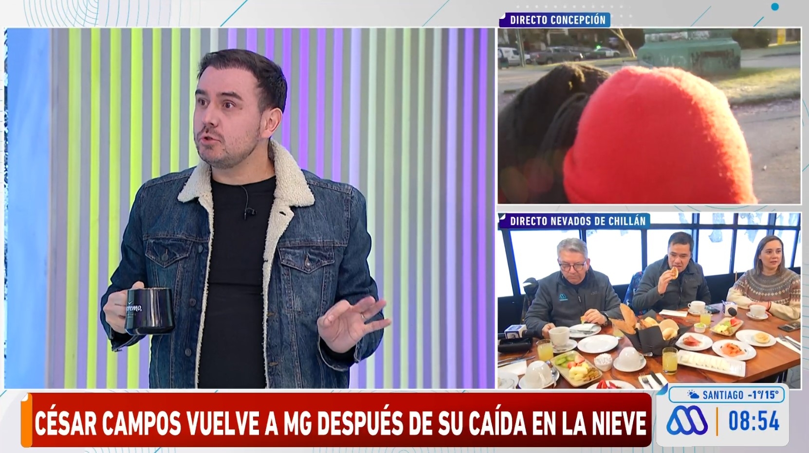 Durante este lunes, César Campos tuvo su tan esperado debut en Mucho Gusto, luego de estar con algunos días de licencia tras sufrir un duro accidente en Farellones, en lo que sería su primer despacho en el matinal.