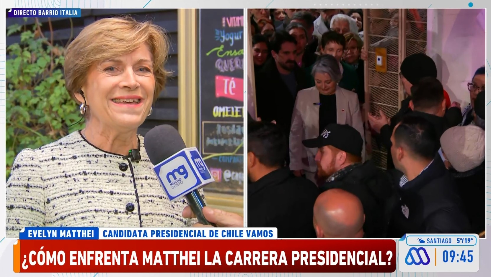 En conversación con Mucho Gusto, la candidata presidencial de Chile Vamos, Evelyn Matthei, habló en extenso sobre su carrera a La Moneda y los desafíos que se enfrentará con sus contendores José Antonio Kast, Johannes Kaiser y Jeannette Jara, entre muchos otros temas.