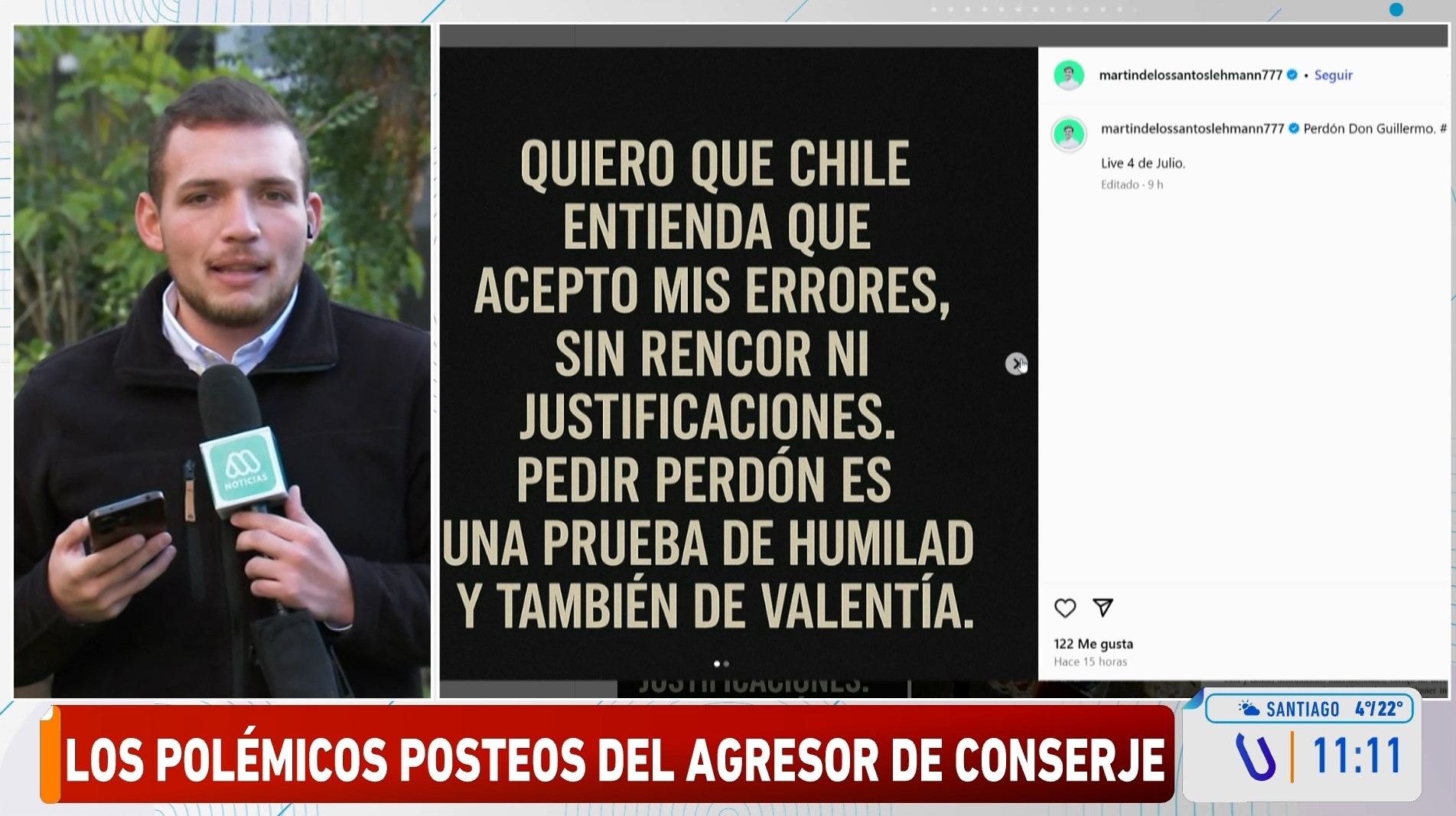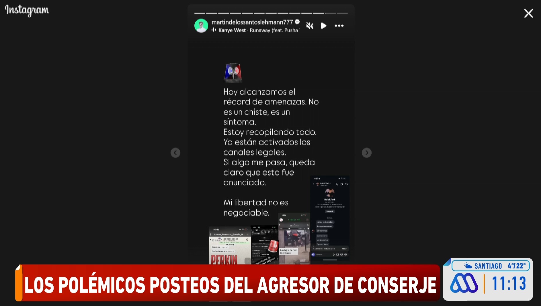 Mientras que en una historia, de los Santos aseguró que "me hago cargo. Punto (...) Hoy soy un adulto con errores, sí, pero también con conciencia. Estoy negociando con respeto con la familia de don Guillermo. Quiero paz, no venganza".