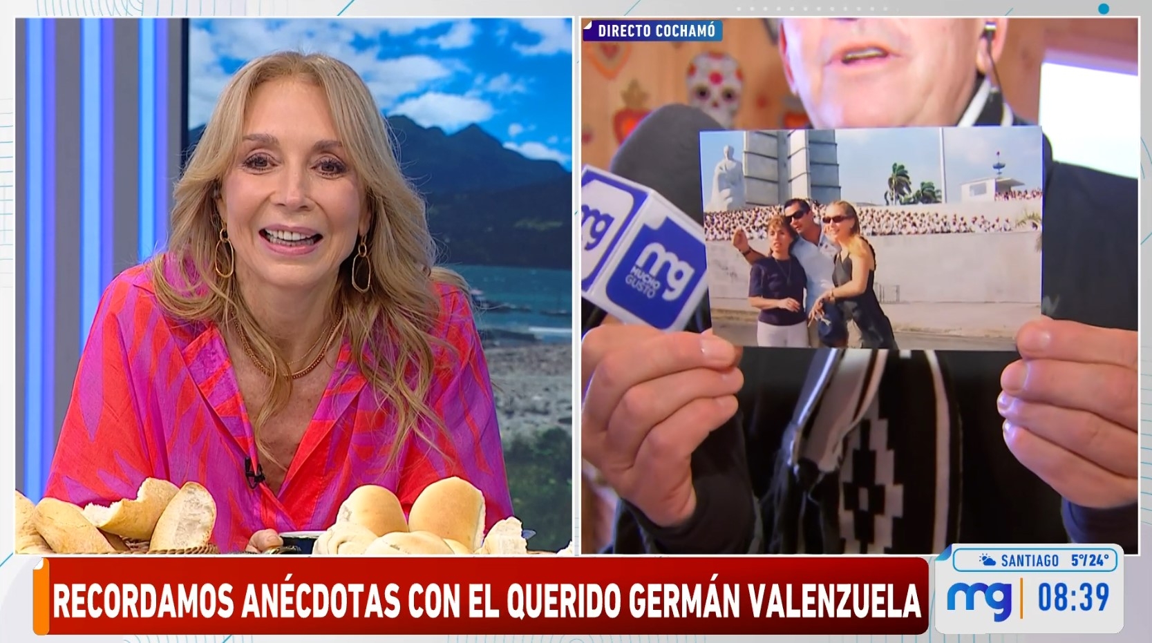 Tras varias bromas de José Antonio Neme, donde especuló sobre el contexto de la foto, Karim retomó el despacho para ahora sí presentar a Germán Valenzuela. La aparición del icónico periodista de los 90’ y 2000’, genuinamente emocionó a Doggenweiler, pues compartieron por años en TVN.