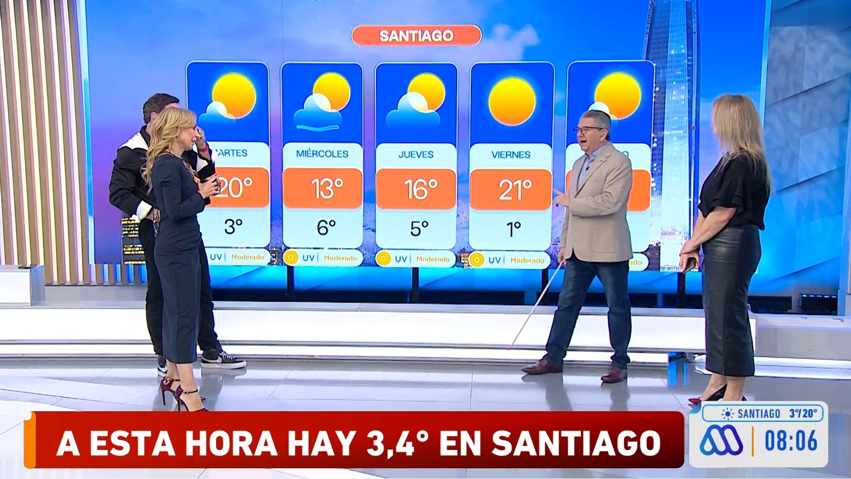 Así lo adelantó el meteorólogo de Megatiempo, Jaime Leyton, durante la entrega de su pronóstico en el Mucho Gusto para esta semana en Santiago. "No hay ni una (posibilidad), nada", dijo respecto a una eventual lluvia en la capital.