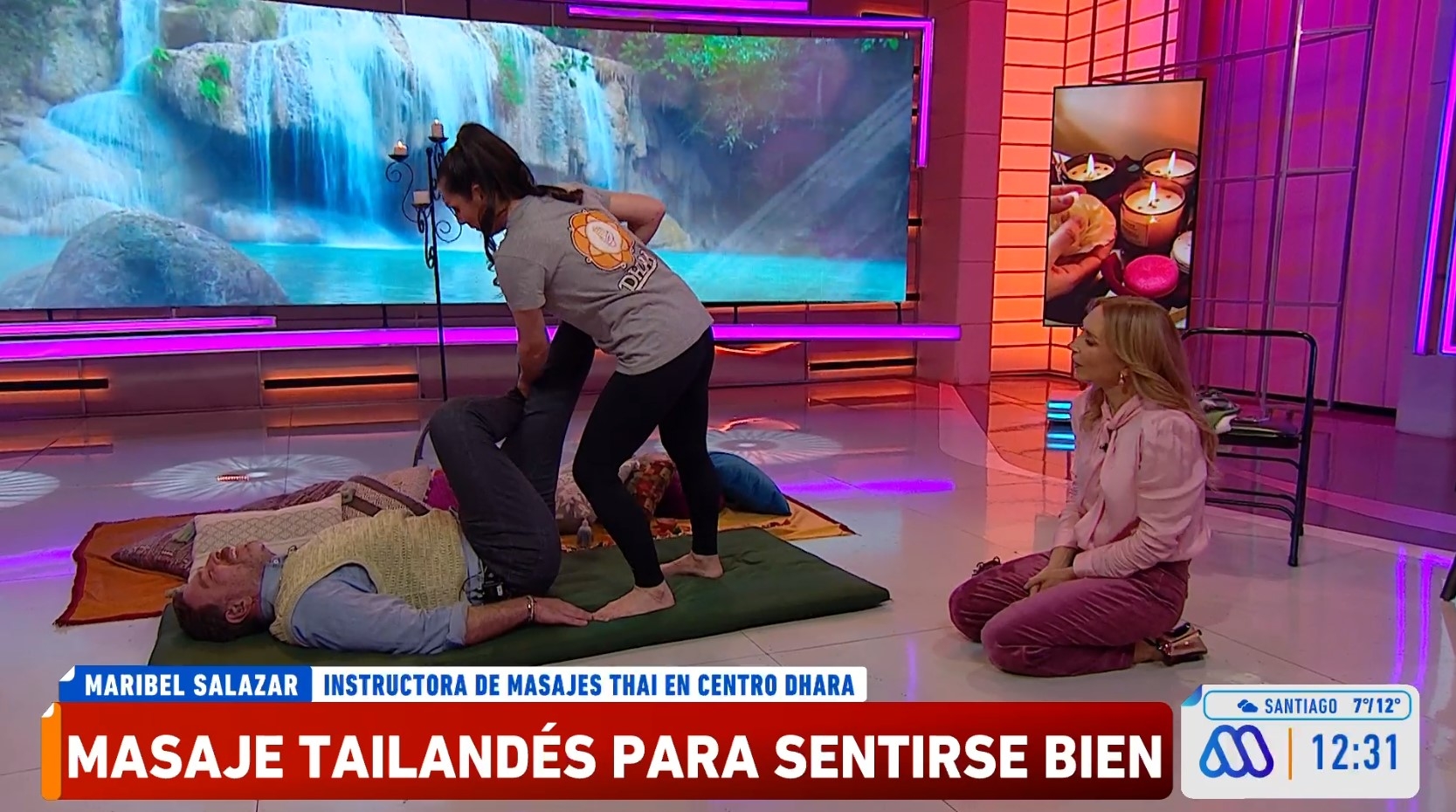 En el matinal, Maribel Salazar, instructora de masajes Thai en Centro Dhara, explicó que combina estiramientos asistidos, presión corporal y respiraciones conscientes para aliviar tensiones físicas y emocionales. Aseguró que muchas personas lo conocen como el "yoga de los flojos", debido a sus posturas similares al yoga, pero guiadas por un terapeuta.
