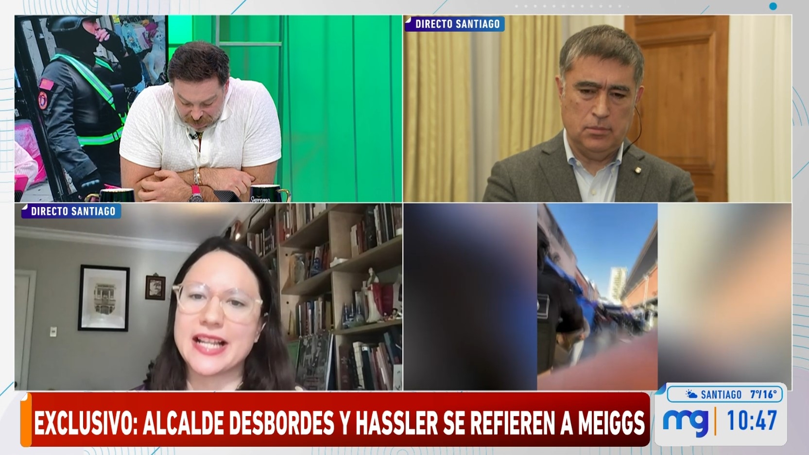 El ambiente se tensó cuando la exjefa comunal se conectó de manera telemática al matinal, para abordar las acusaciones que previamente había entregado Desbordes sobre un presunto millonario desfalco durante su administración. "Lamentablemente, hay excusa tras excusa. Busca simplemente hablar de mí para desviar la atención respecto a la gestión que él debe hoy día realizar y para lo cual fue escogido por la comunidad", afirmó Hassler.