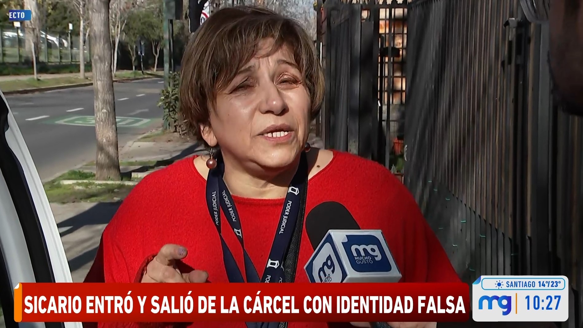 En las afueras de su casa en Peñalolén, fue abordada por el comunicador para consultarle sobre el caso en que se encuentra envuelta, y donde el criminal, cuya verdadera identidad se dio a conocer hoy, sigue prófugo.