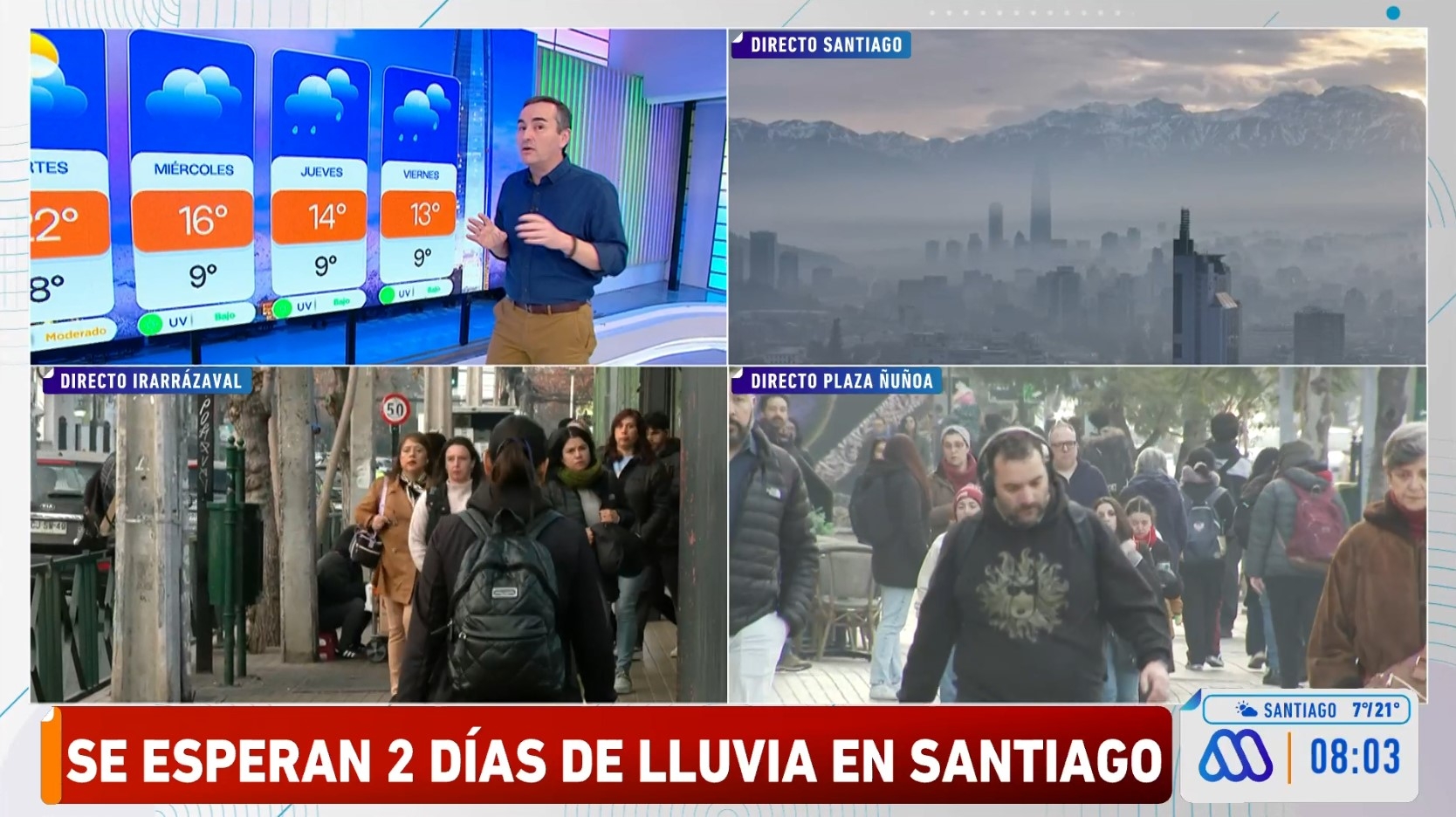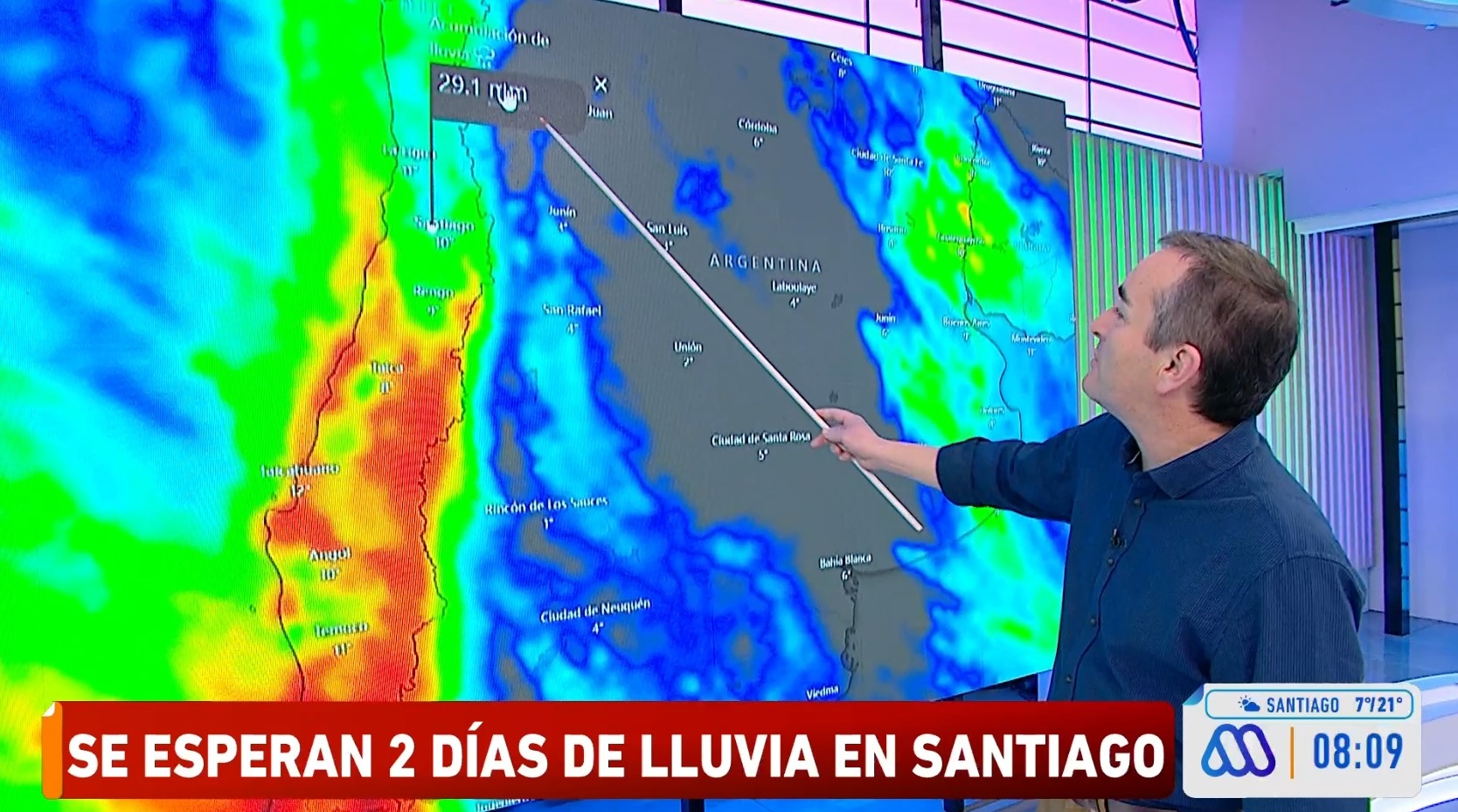 "Vamos a tener precipitaciones dos días: jueves y viernes. Por ahora, comenzaría a llover con más persistencia el jueves en la tarde, pasadito el mediodía y se mantendría así durante la madrugada y la mañana del viernes", advirtió Sepúlveda en Mucho Gusto.