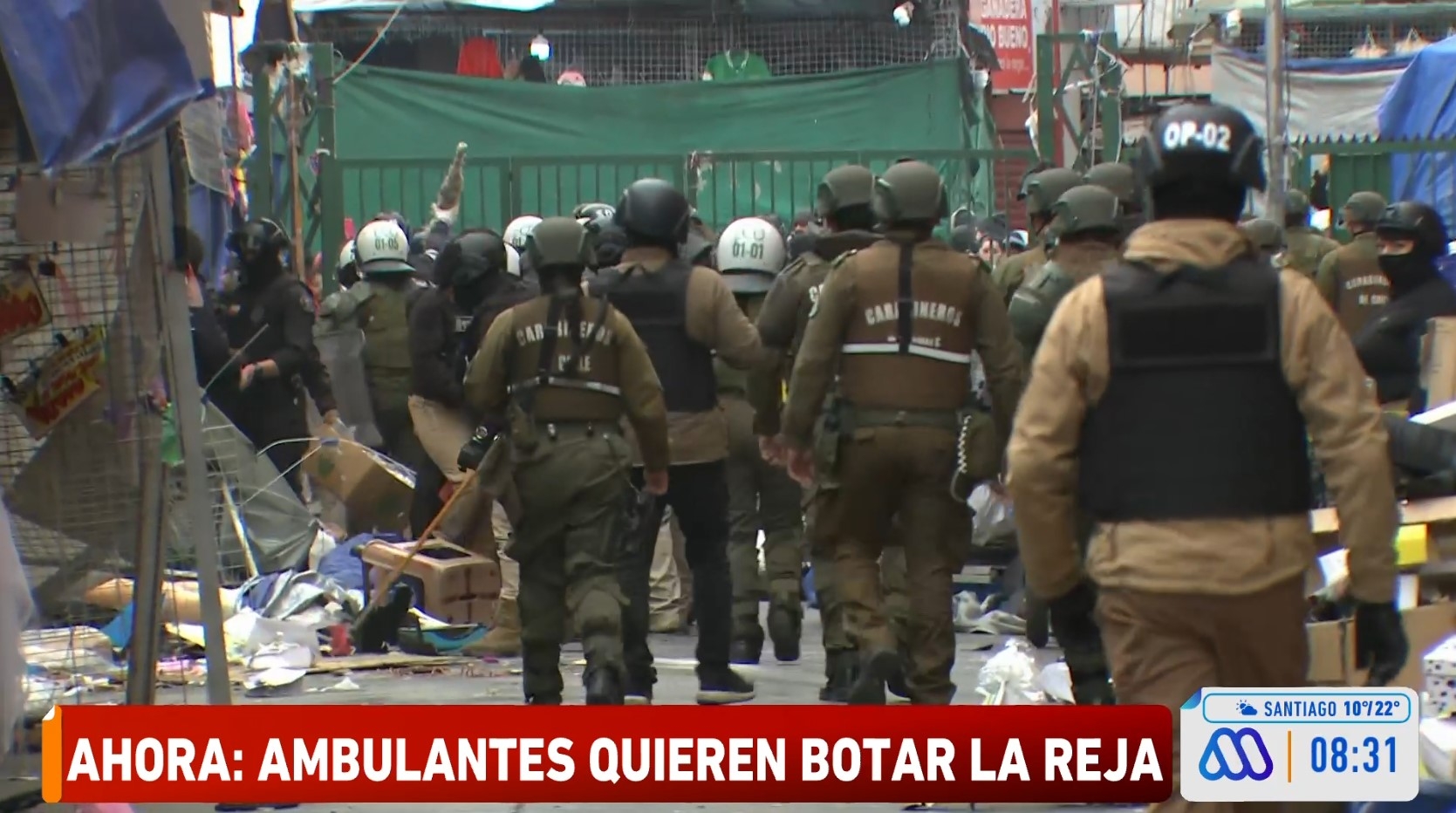 Un grupo importante de carabineros se agolpó en la división para evitar mayores disturbios, ante la gran concentración de comerciantes ilegales que buscaban impedir el desarrollo del operativo.