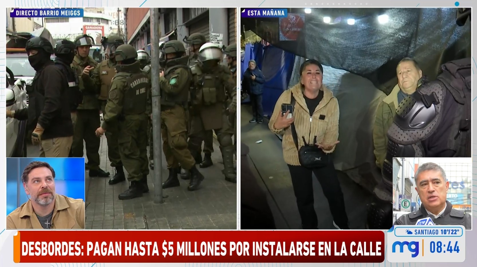 Tras el intenso desalojo de comerciantes ambulantes que se realizó este martes en Meiggs, el alcalde de Santiago, Mario Desbordes, afirmó que "hay crimen organizado" en el barrio y que se arriendan espacios en la calle para instalar toldos azules por $5 millones.