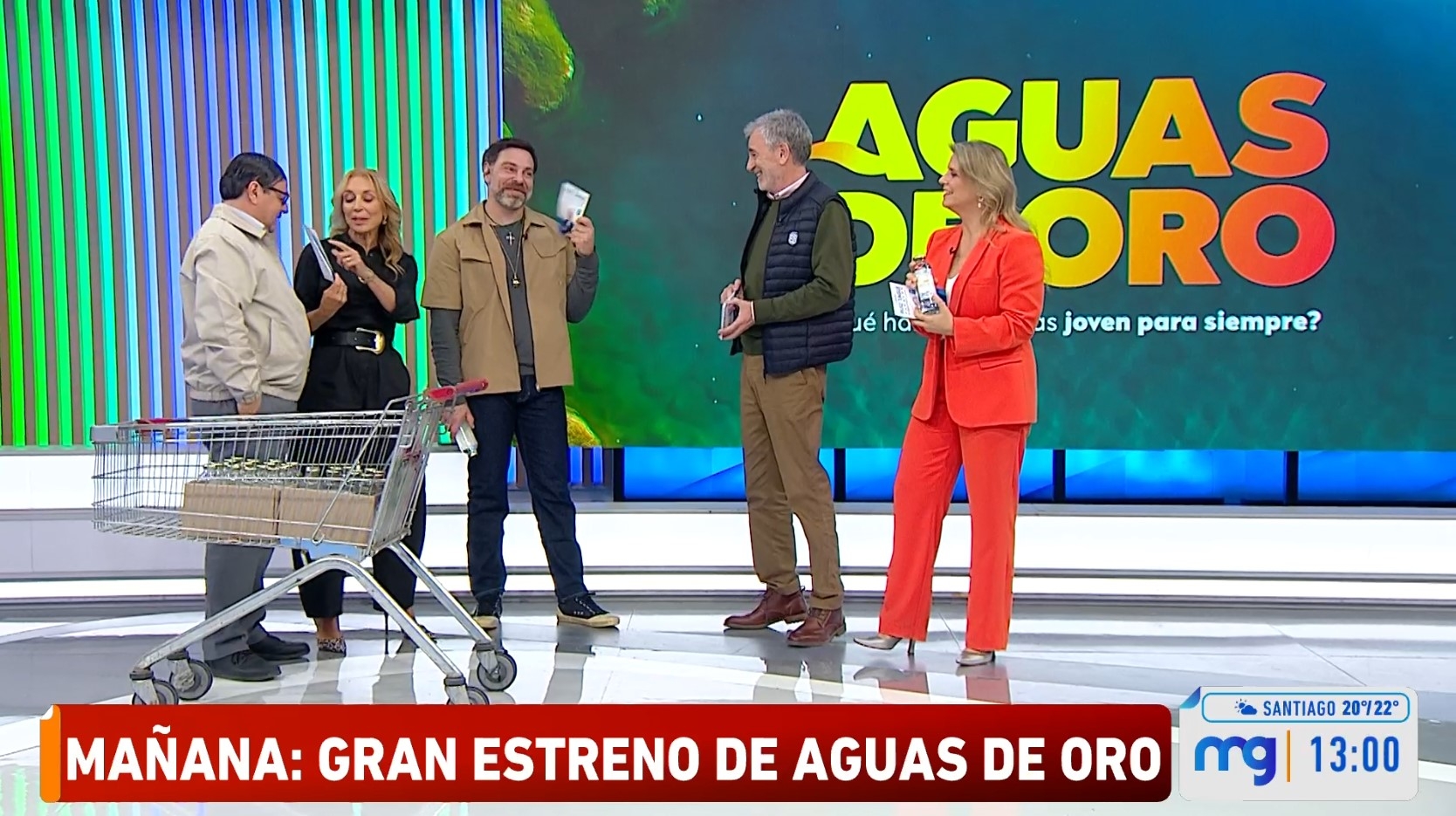 La tranquilidad de Mucho Gusto se vio interrumpida la tarde de este martes, con la irrupción del elenco de la nueva teleserie de Mega, Aguas de Oro.