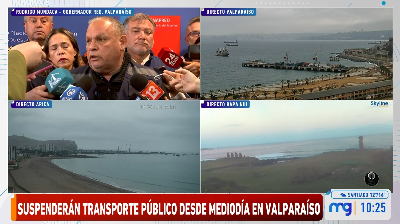 Según detalló el gobernador Rodrigo Mundaca, tras el Cogrid que tuvo lugar en dependencias del Senapred de Valparaíso, a partir de las 12 del mediodía se va a restringir el transporte público en todo el eje estructural en torno al borde costero.
