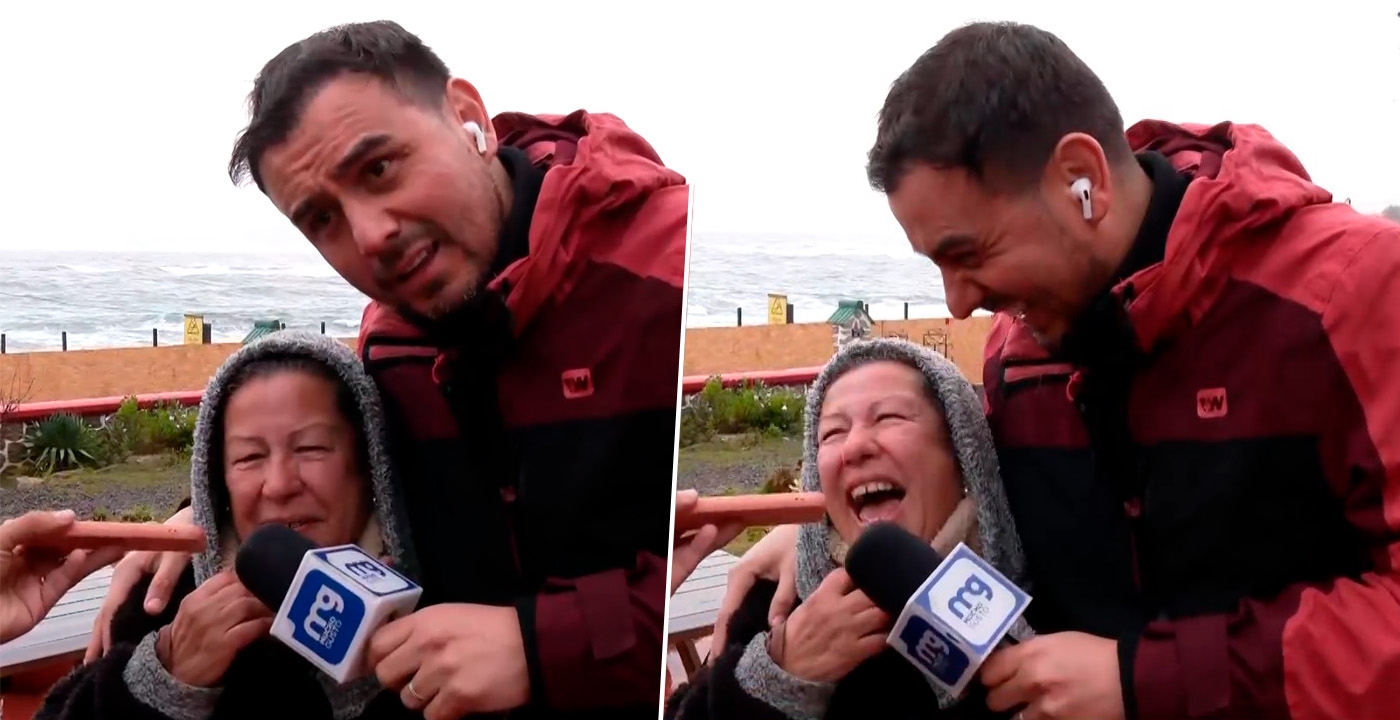 Todo ocurrió mientras conversaban con Jeannette, una divertida residente de Algarrobo que recibió al periodista César Campos en medio de los fuertes vientos y lluvia que azotaban a la comuna costera.